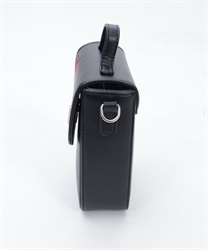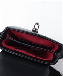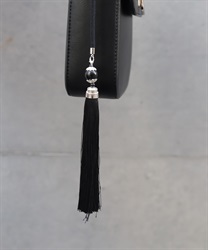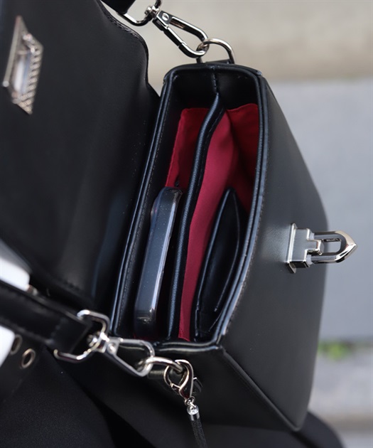 合皮やシルバーの金具と、繊細な刺繍や大ぶりのタッセル、内張の真紅のコントラストが和モードな雰囲気に。