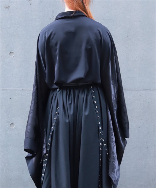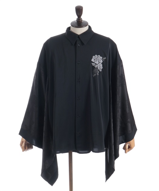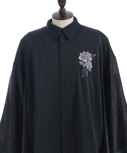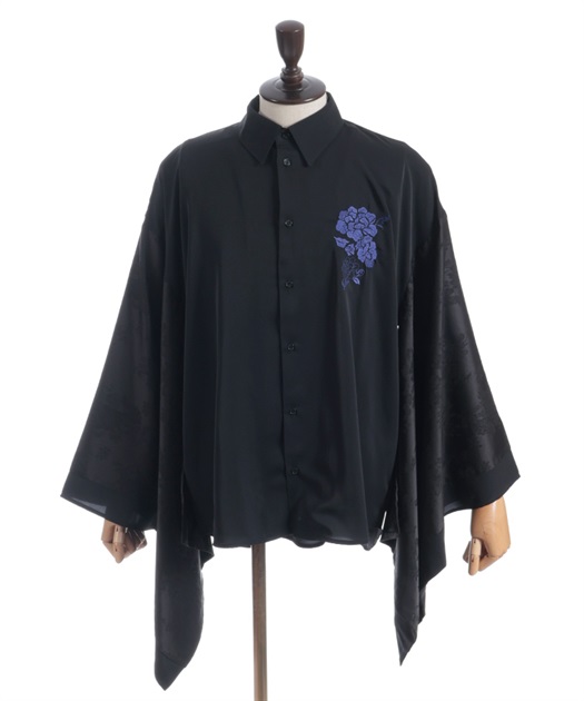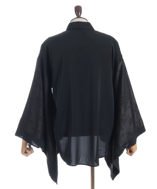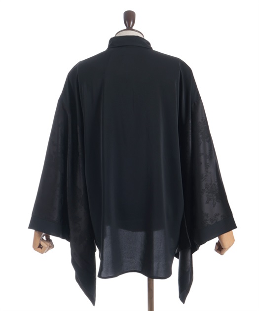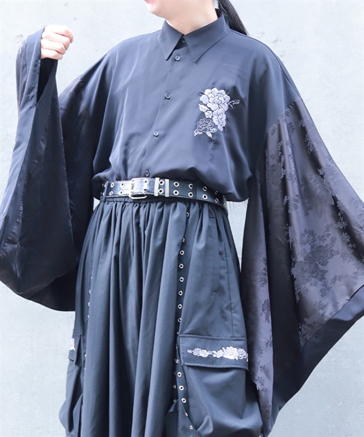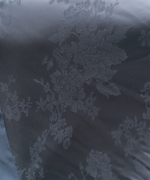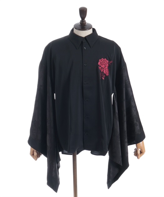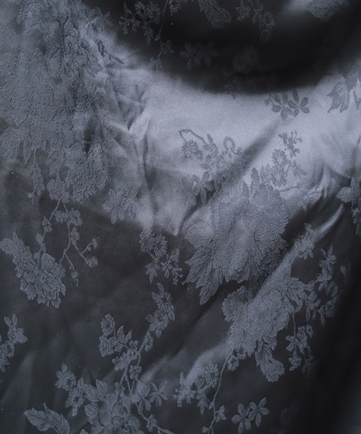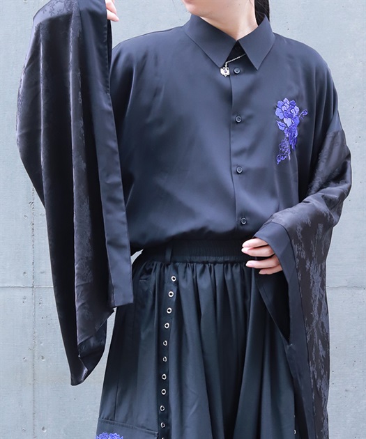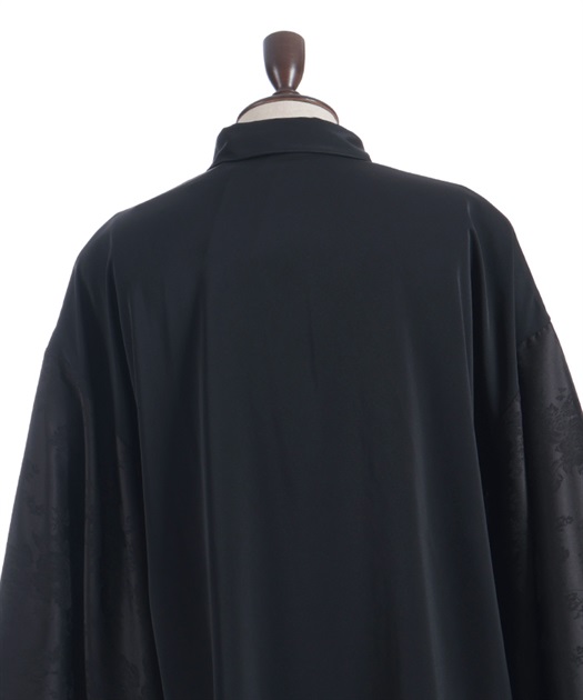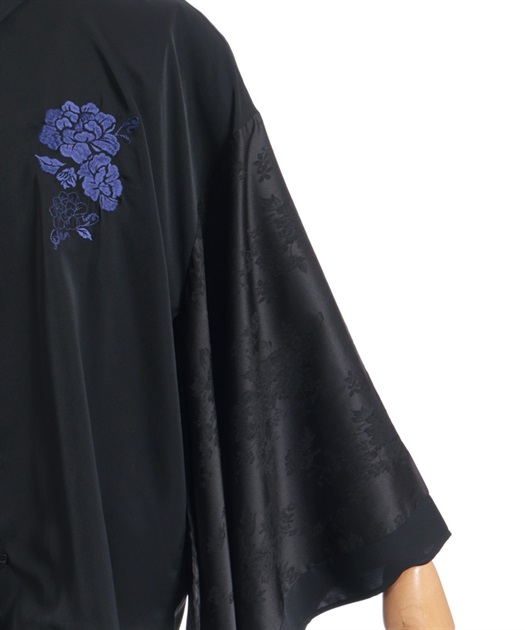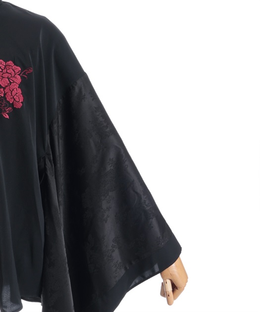 和袖部分には牡丹が描かれた艶のあるジャガード生地を使用。