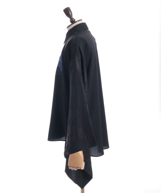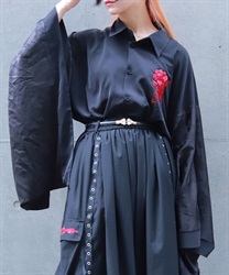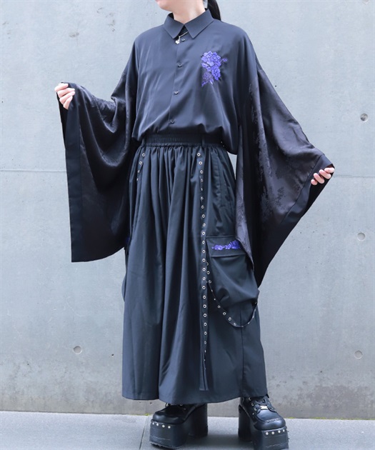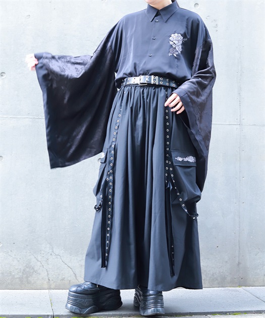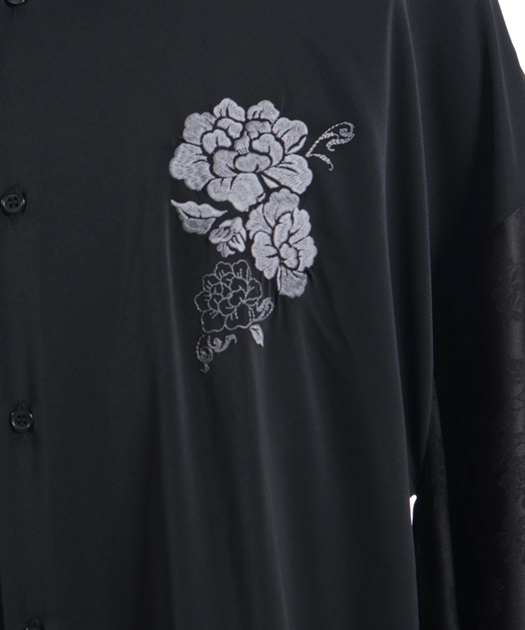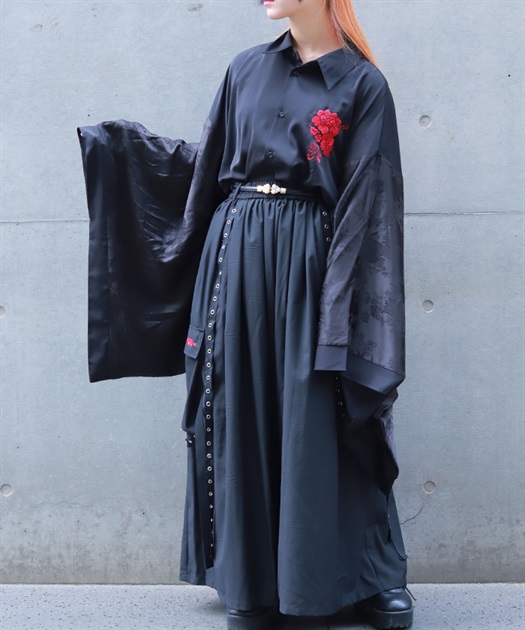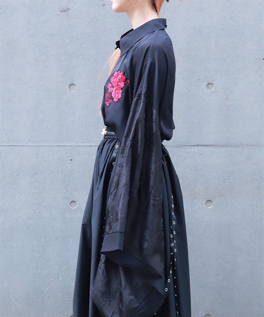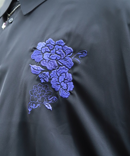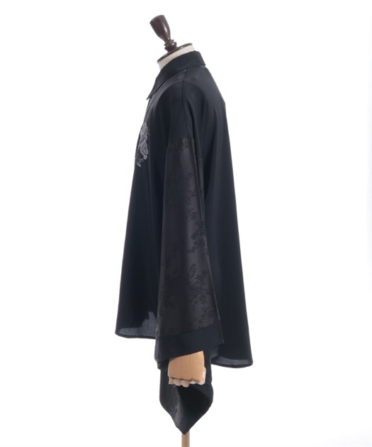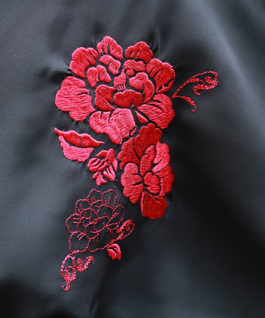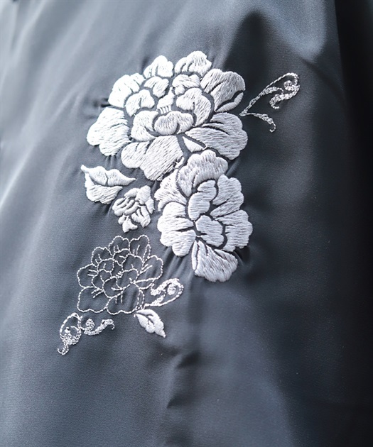 胸に施された豪華な刺繍が、和モードの雰囲気を醸し出します。