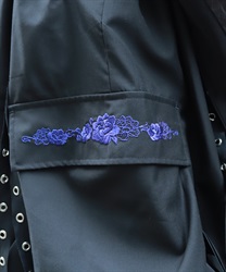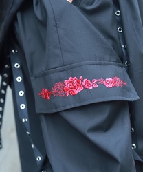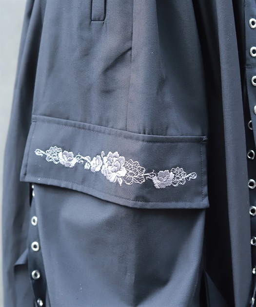 ポケットに施された豪華な刺繍が、和モードの雰囲気を醸し出します。