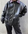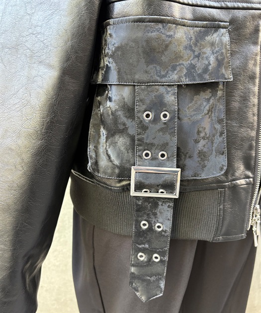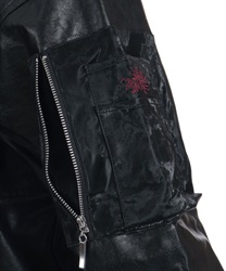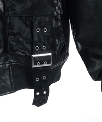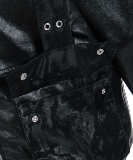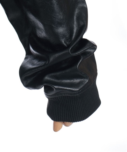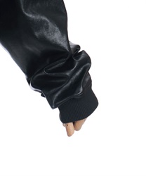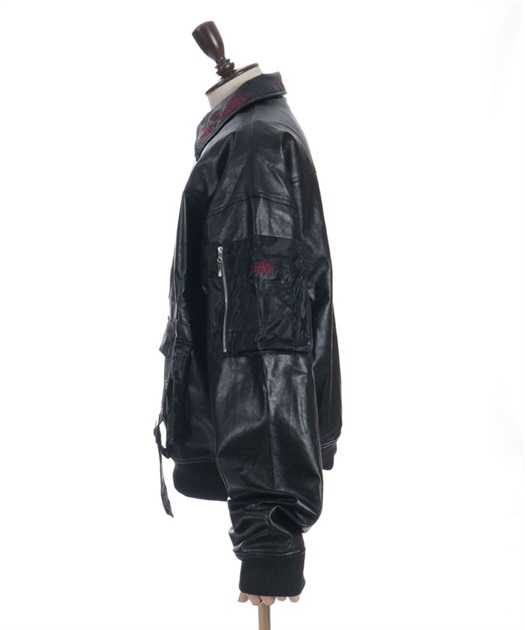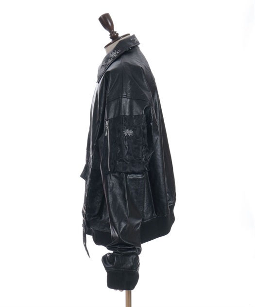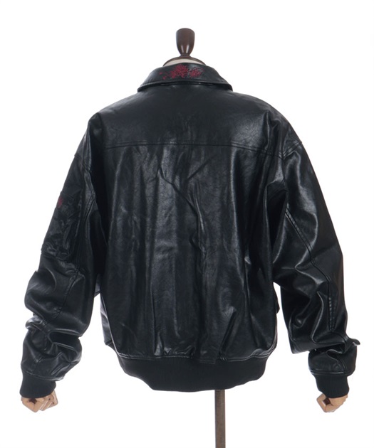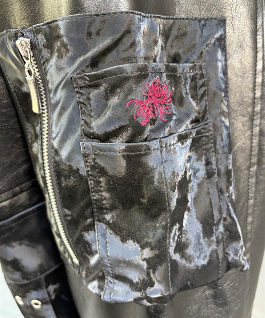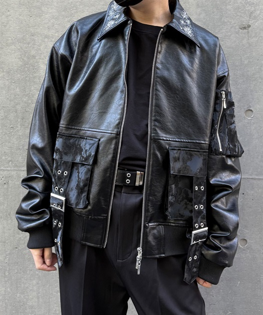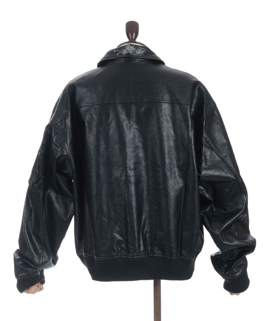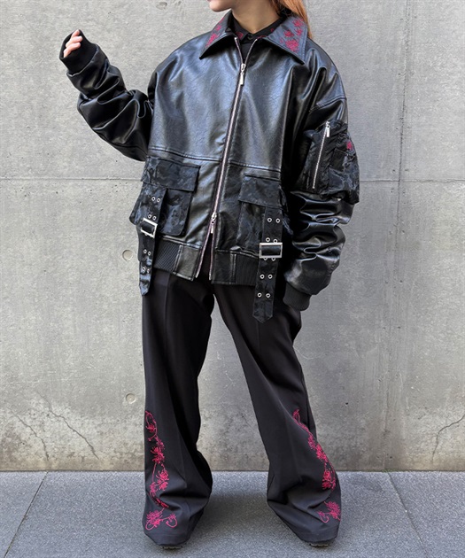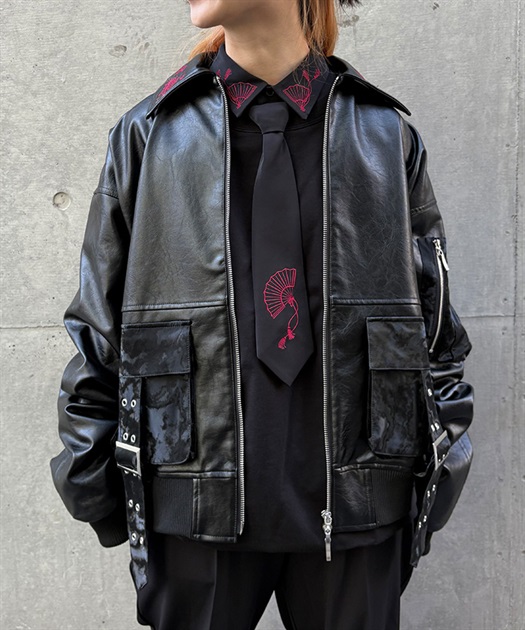 合皮の質感と刺繍の組み合わせが、和洋折衷な雰囲気を醸し出すブルゾン。