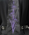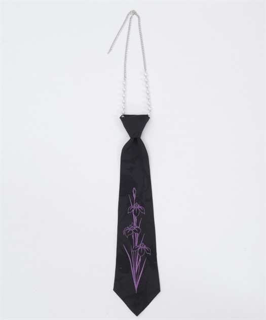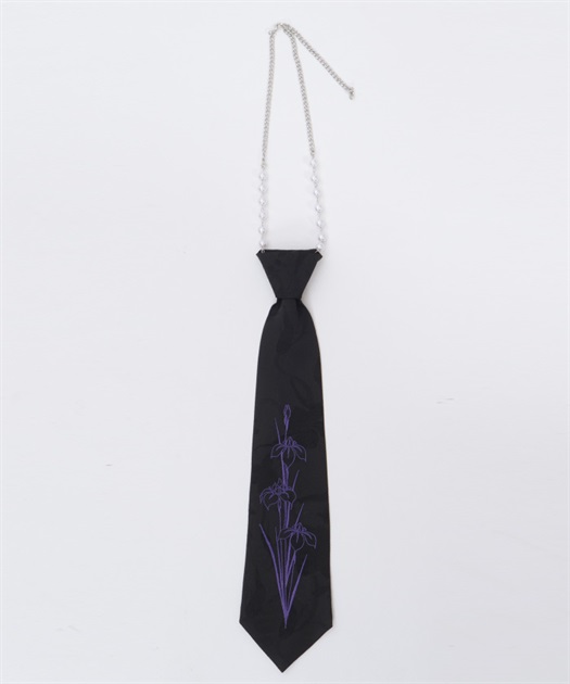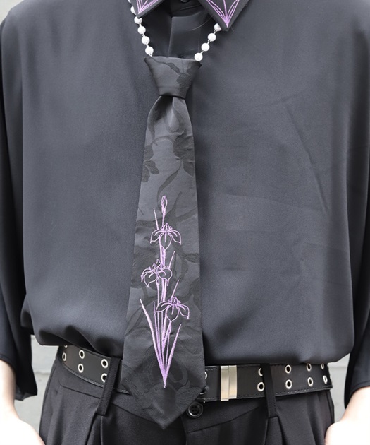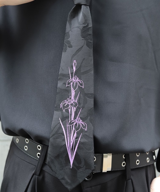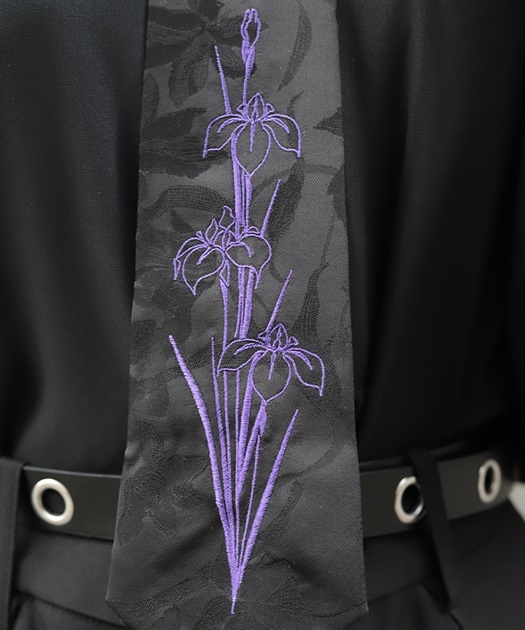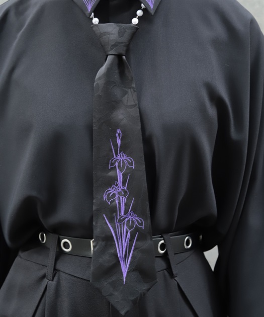 中央には大きく、繊細な線で表現したアヤメを刺繍。