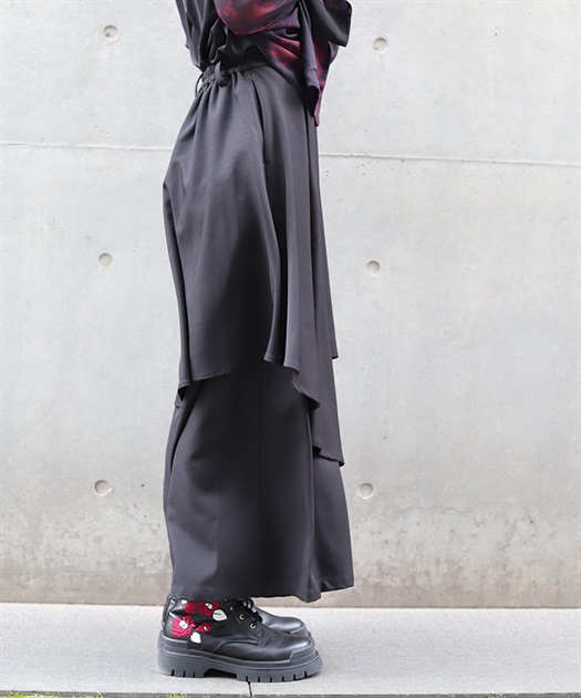 アシンメトリーなレイヤードが、雅な雰囲気を醸し出すパンツ。