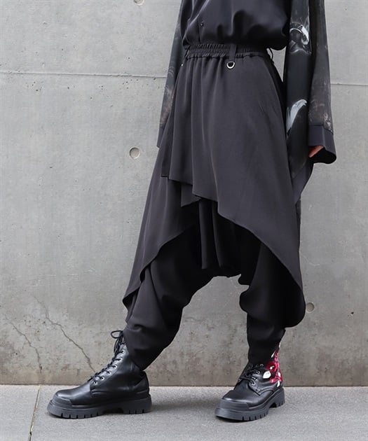 和モードな雰囲気を醸し出す、サルエルパンツ。