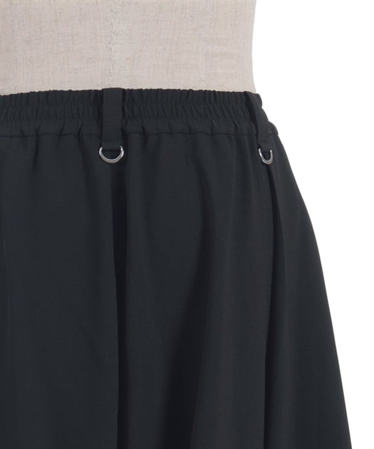 ベルトフープに付けられたDカンが、モダンなアクセントに。