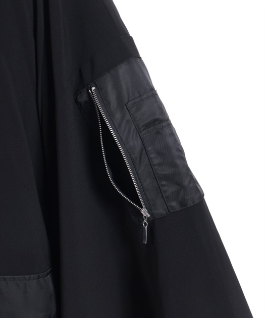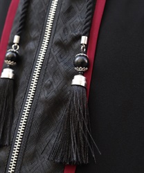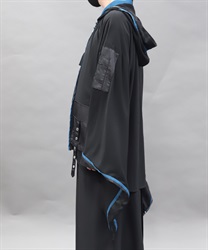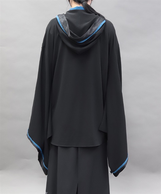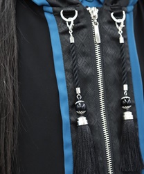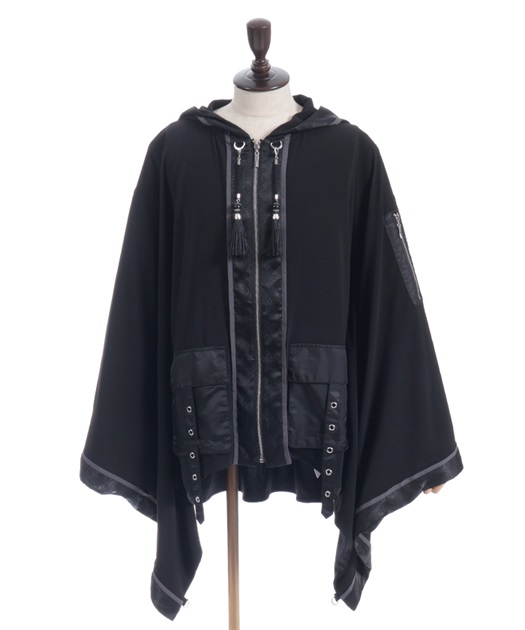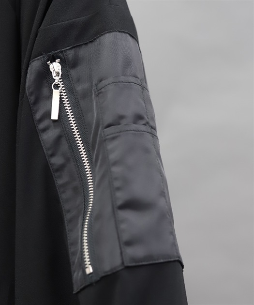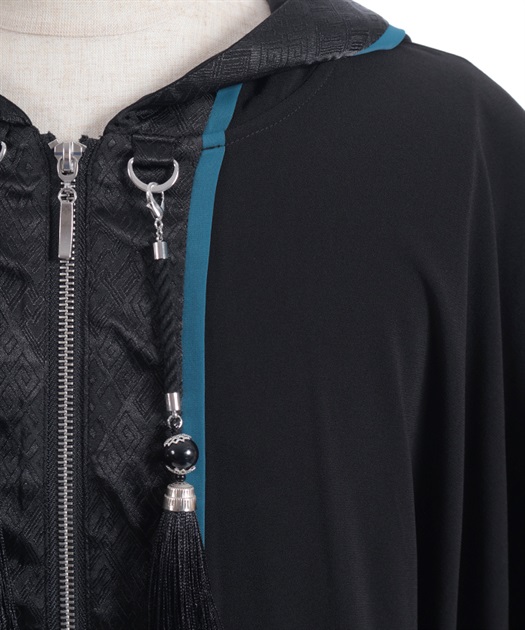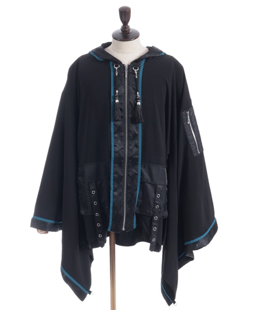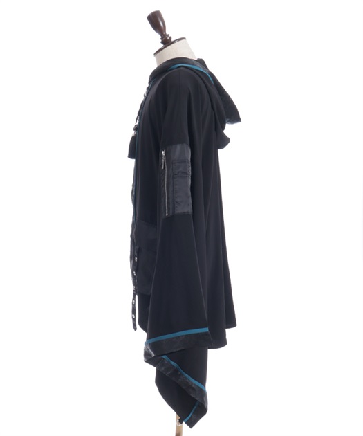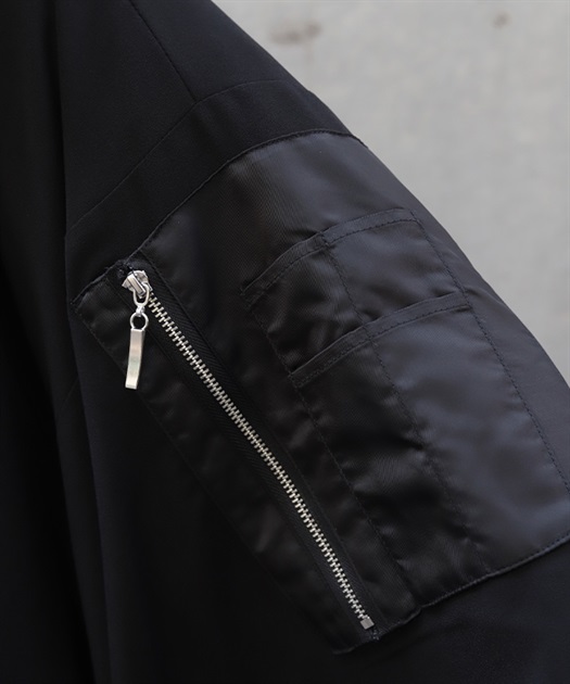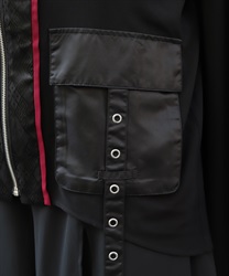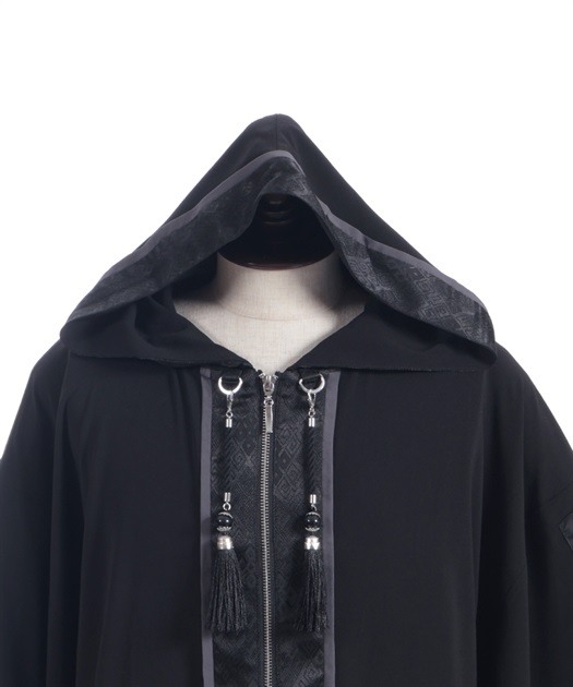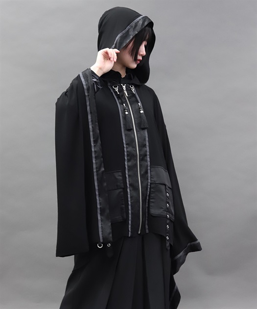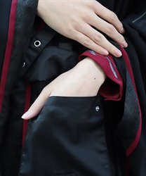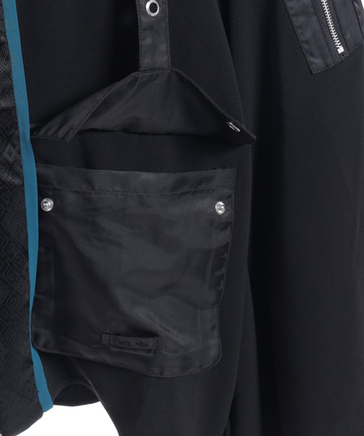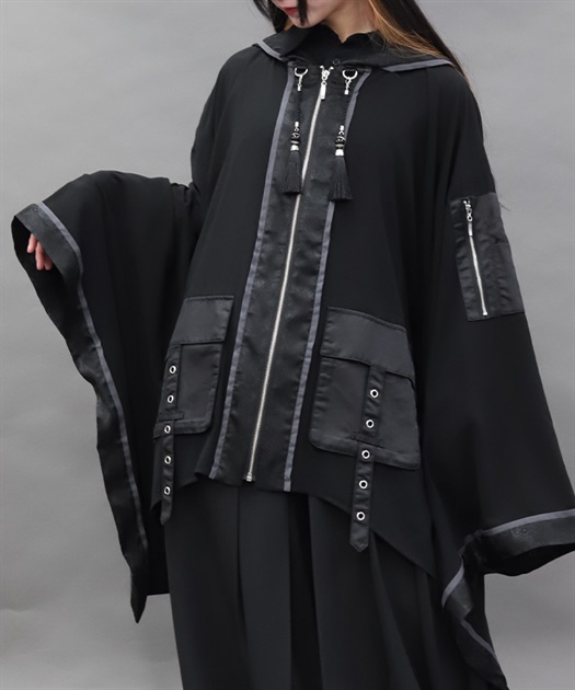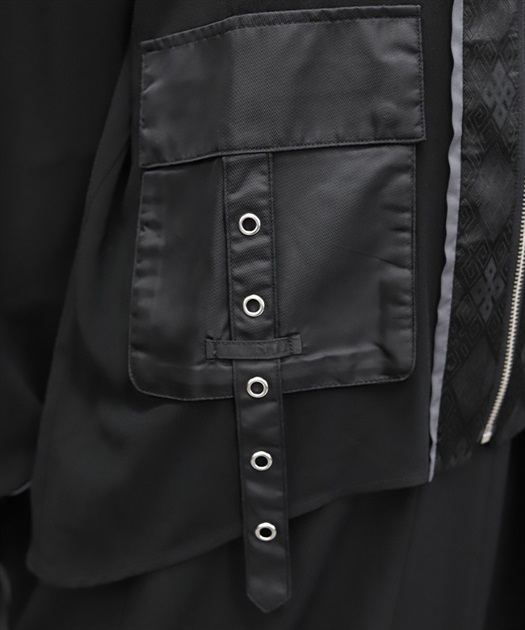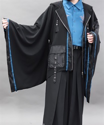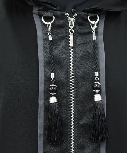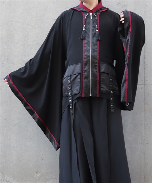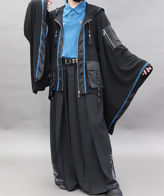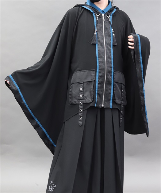 ハトメベルト付のポケットや肩のシガーポケットと、和袖やタッセルのディテールの対比が、和洋折衷な雰囲気を醸し出します。