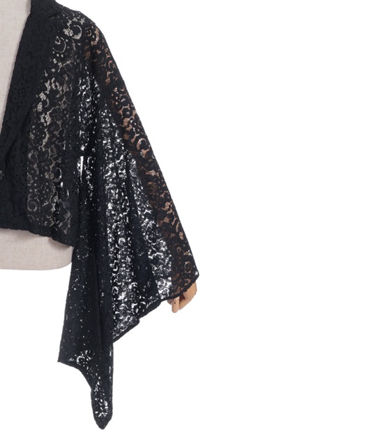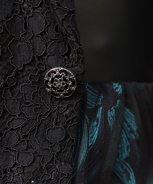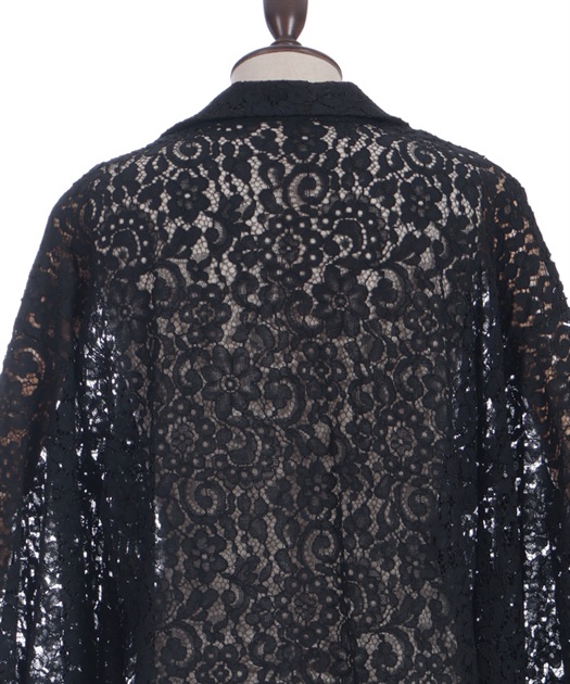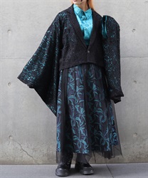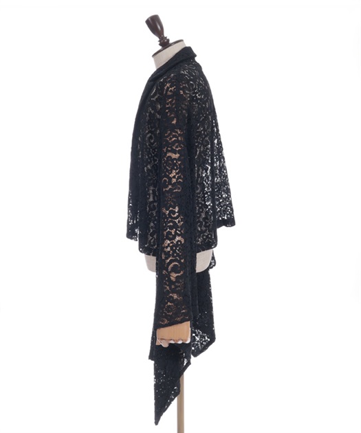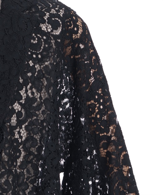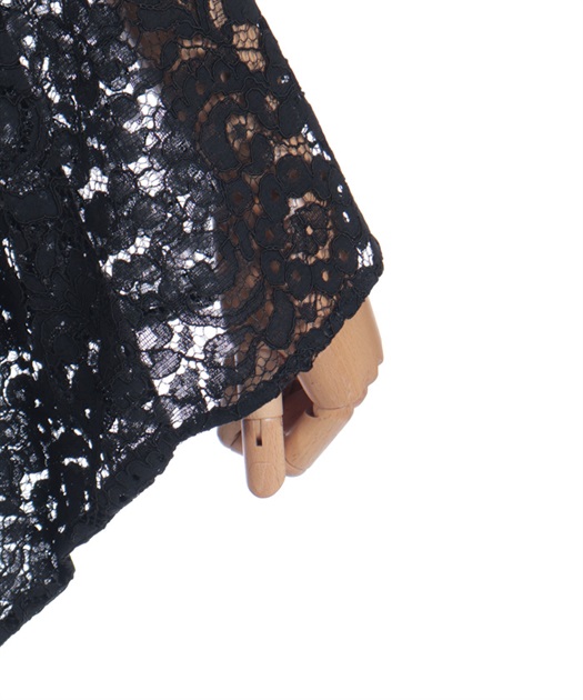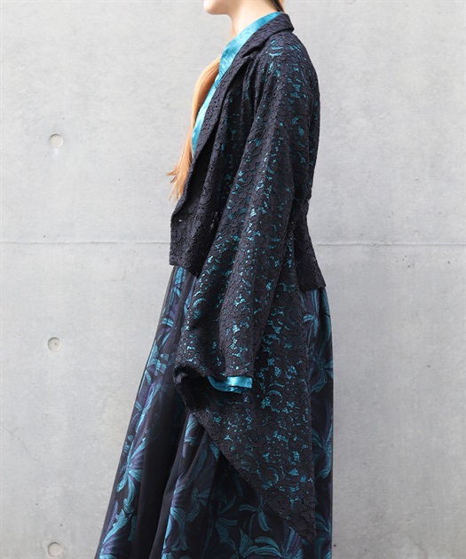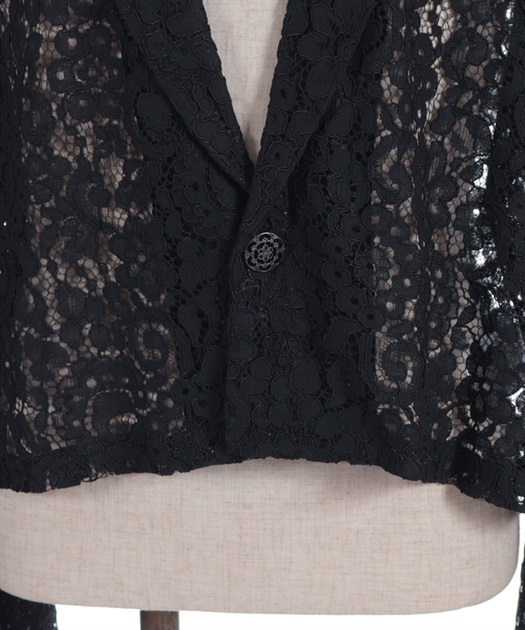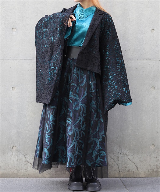 花柄のレースとショート丈のシルエットが、中性的な印象を演出します。