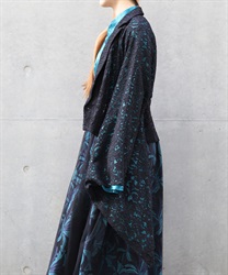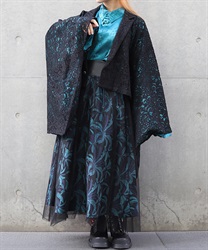 シンプルながらゆったりとしたシルエットのテーラードジャケットに和袖を組み合わせて、和洋折衷のテイストに。