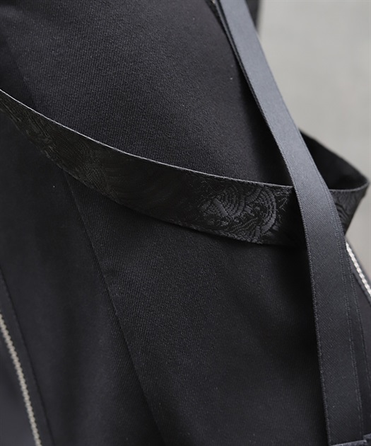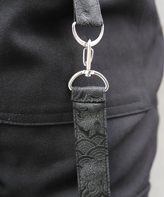 取り外し可能なボンテージストラップには、青海波などが描かれた和柄のジャガード生地を使用。