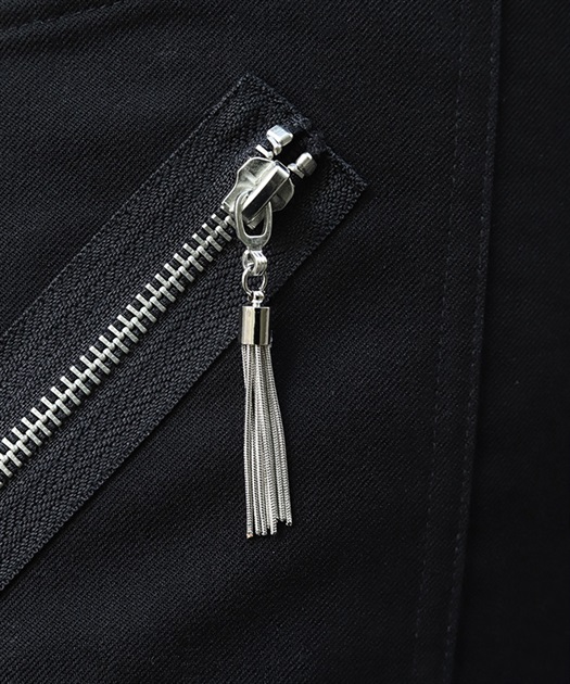 ジッパーのディテールが、ハードなアクセントに。