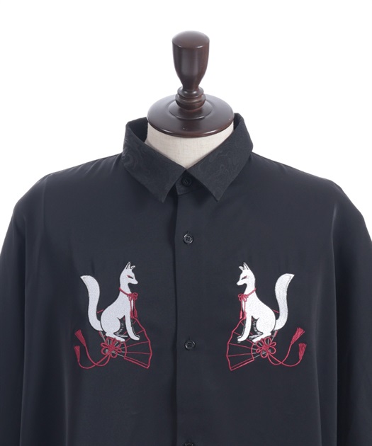 稲荷神の使いである白狐の、神秘的な魅力をデザインに落とし込んだシャツ。