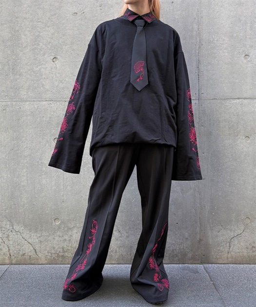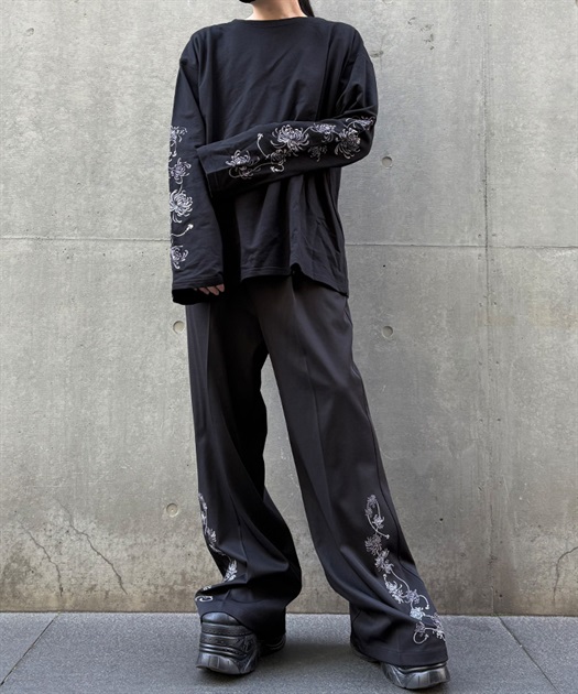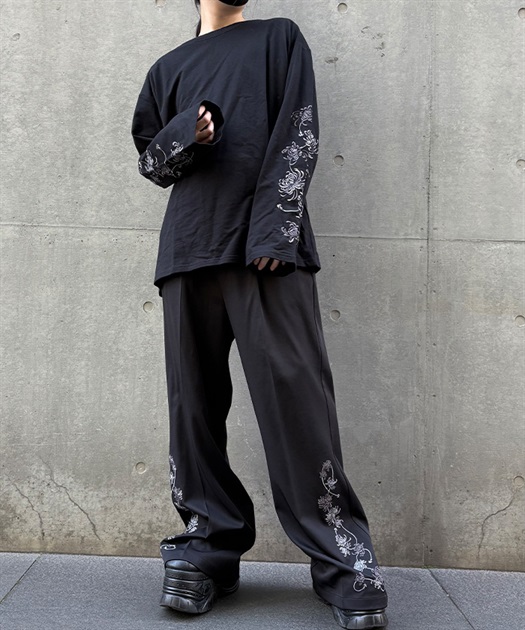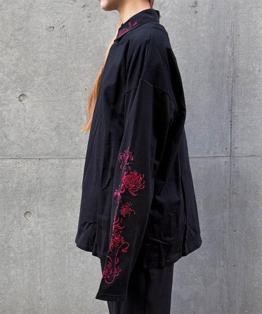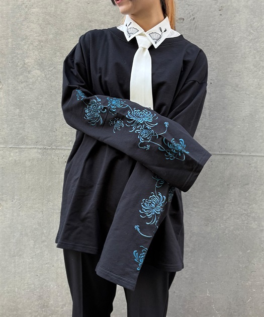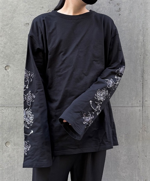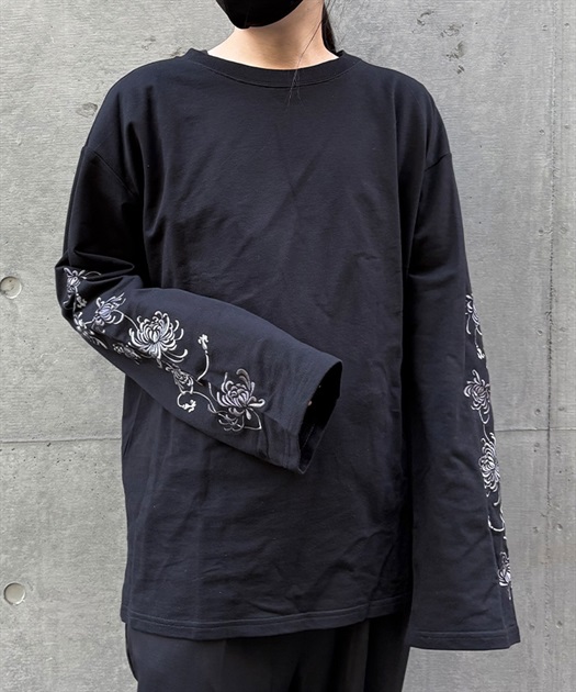 大ぶりな菊の刺繍が目を惹くロンT。