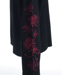 袖に施された大小の菊の刺繍は、同系色の微配色遣いで奥行きを演出します。