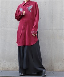 トロミのある生地とロング丈が、奥ゆかしくも力強い和モードの雰囲気を醸し出します。