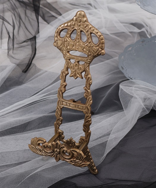 【アイテム説明】おしゃれなクラウンモチーフのミニイーゼル。アンティーク風のゴールドフィニッシュが素敵です。お気に入りのプレートやポストカードを立てかけて飾ってください。受け部分は奥行があるので、洋書や額縁も飾れます。【材質】真鍮【注意点】 アンティーク仕上げのためキズや黒ずみを施していますので、予めご了承ください。取扱店舗は「店舗の在庫状況を見る」よりご確認ください。