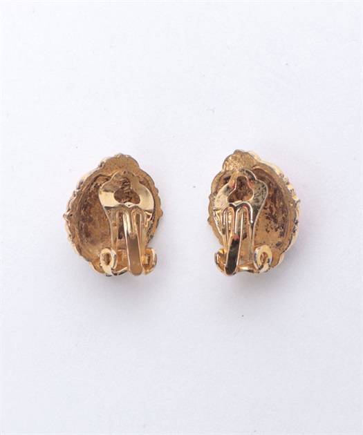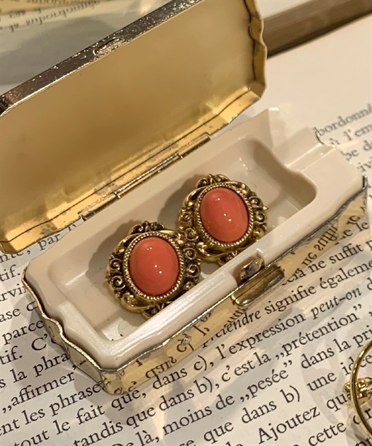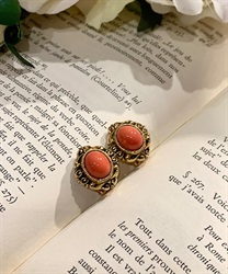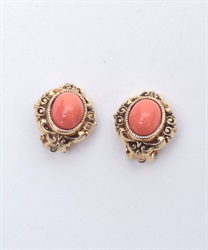 コーラルカラーのストーンがポイントのイヤリングです。