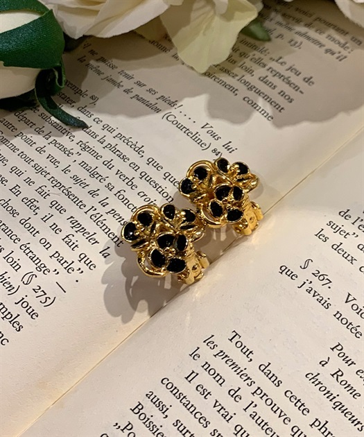 シックなフラワーモチーフイヤリングです。
