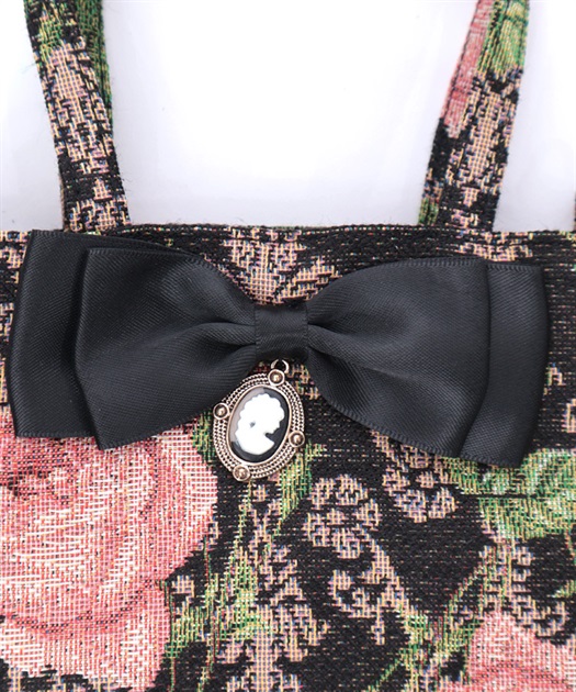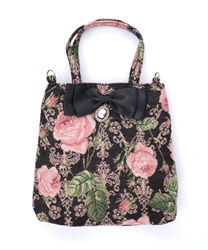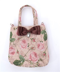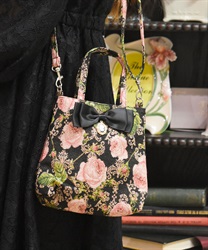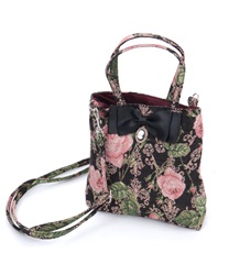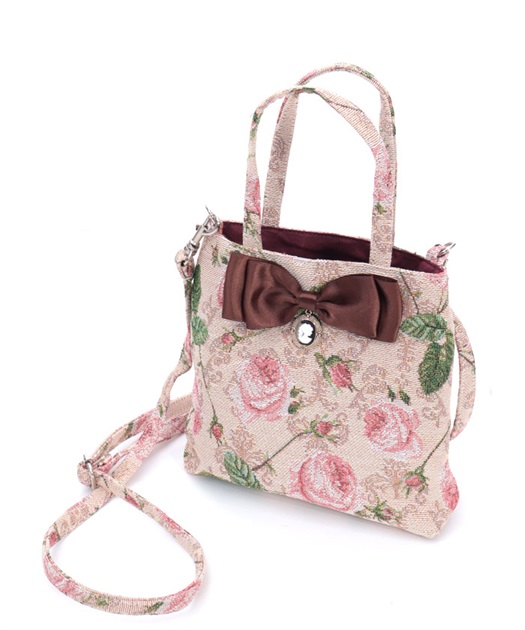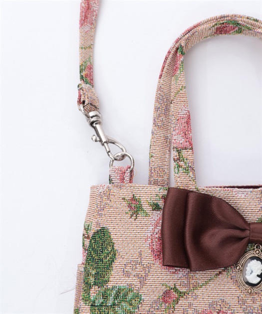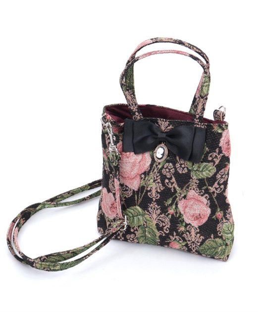 ローズ柄のジャガード生地にカメオリボンを合わせたクラシカルなミニポシェットです。