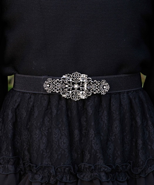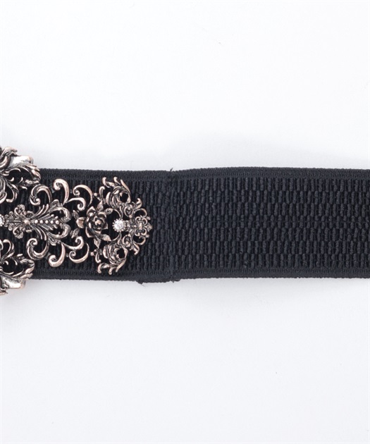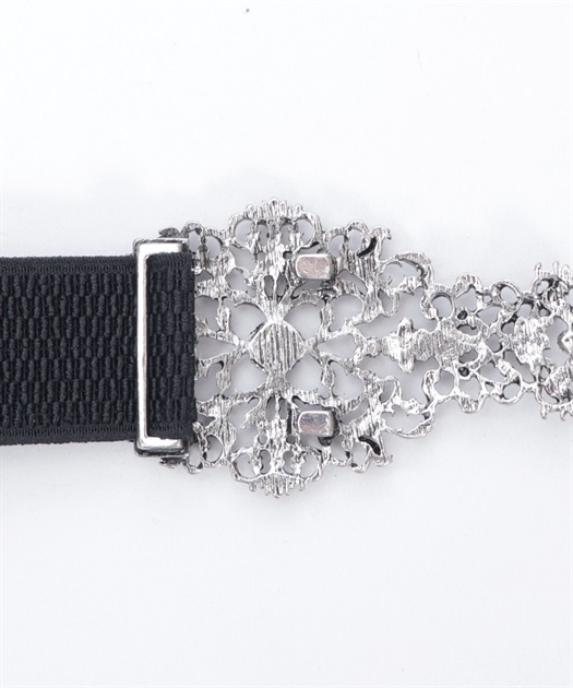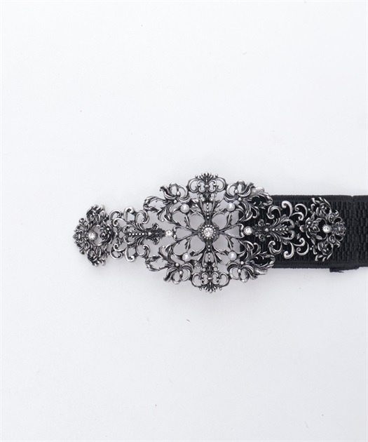 繊細なオーナメントモチーフの細ゴムベルトです。