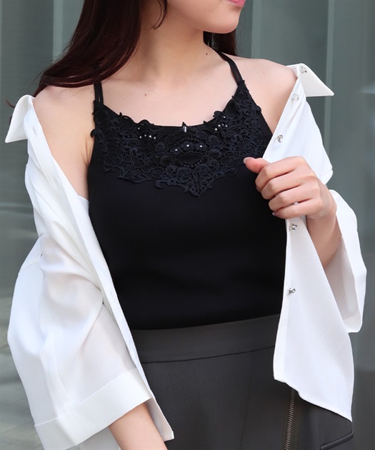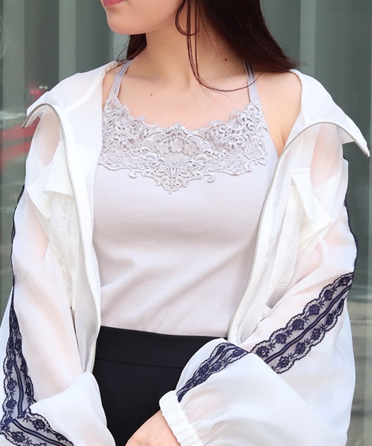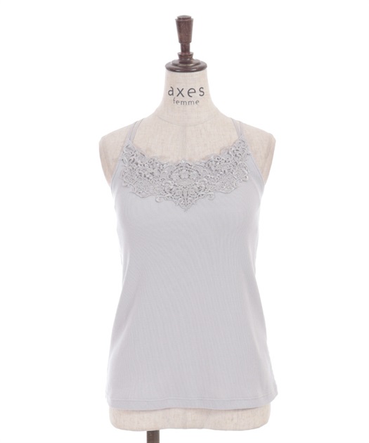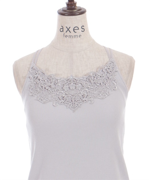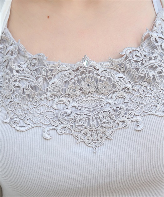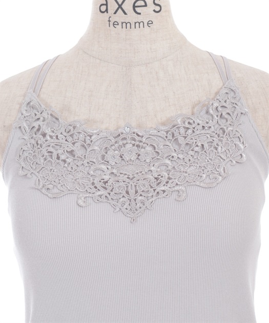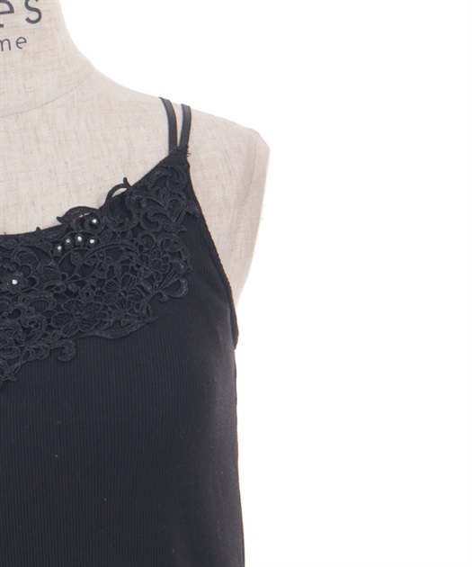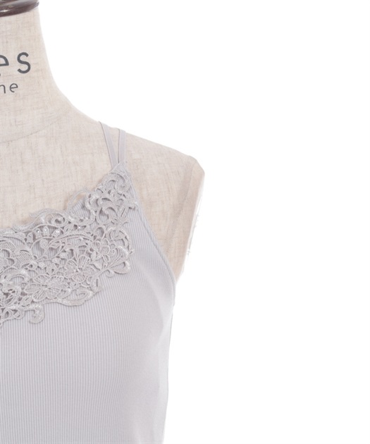 オリジナルのケミカルレースがフェミニンなカップ付きキャミソールです。