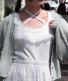 首の後ろで結ぶ仕様のレースストラップは取り外し可能で、前クロス・ストレート・無しの3パターンで楽しめます。