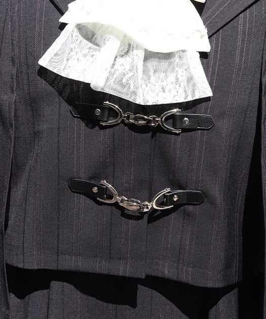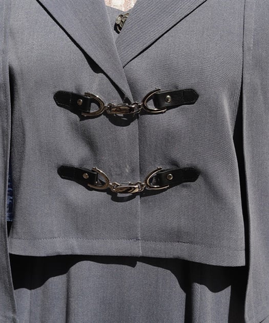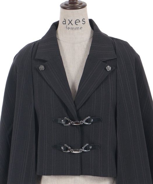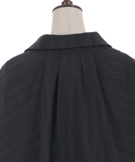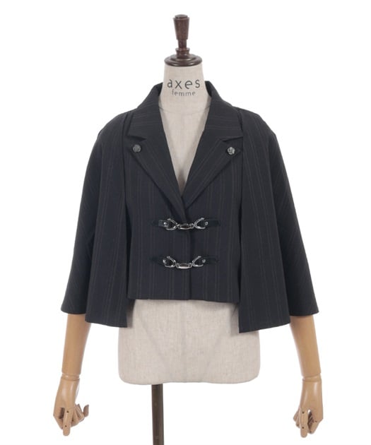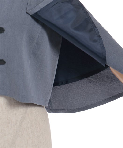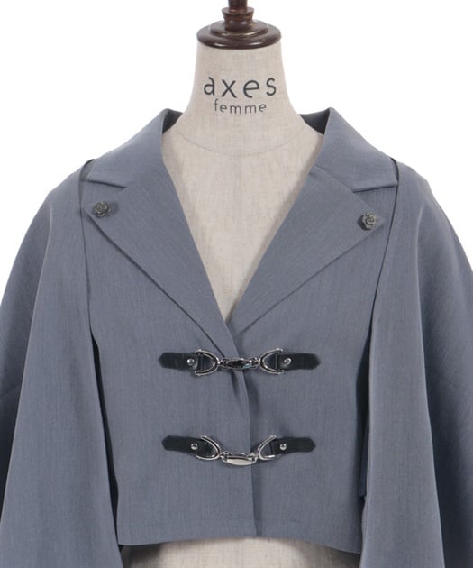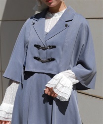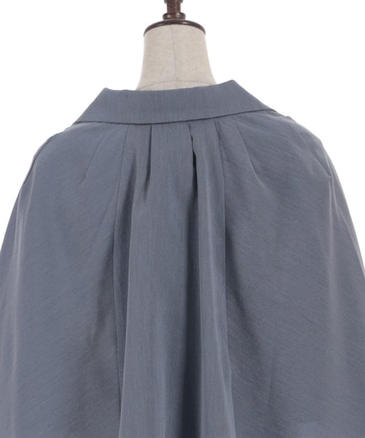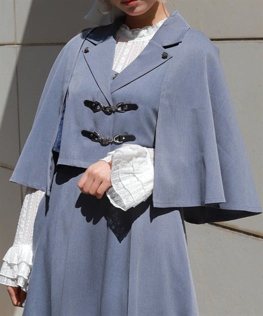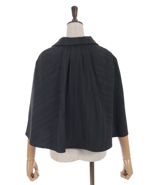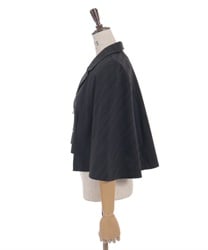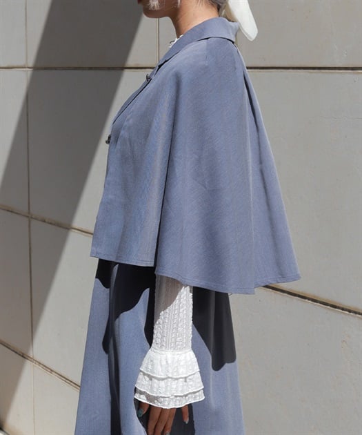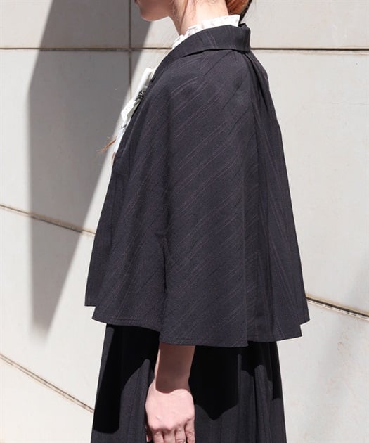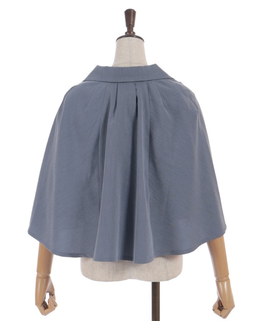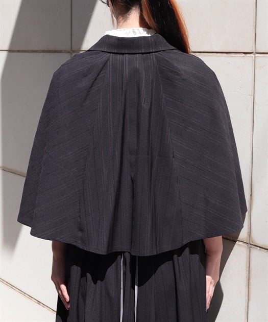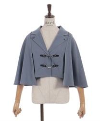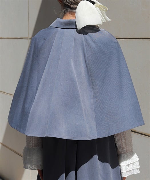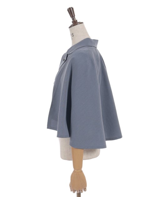 ふんわりと広がるケープシルエットが、動きに合わせてやわらかな表情を生み出す一着。フロントの留め具ディテールがアクセントとなり、シンプルながらも印象的なデザインに仕上げています。短めの丈感でバランスが取りやすく、軽やかに羽織れるのも魅力です。