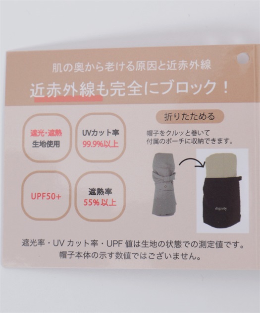 ハットを折りたたんで収納できる巾着が付属しており、旅行やレジャーの持ち歩きにも◎