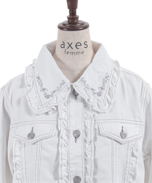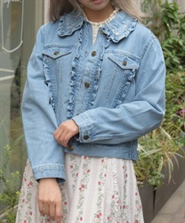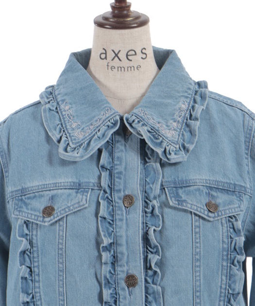 ローズ刺繍フリルデニムジャケット