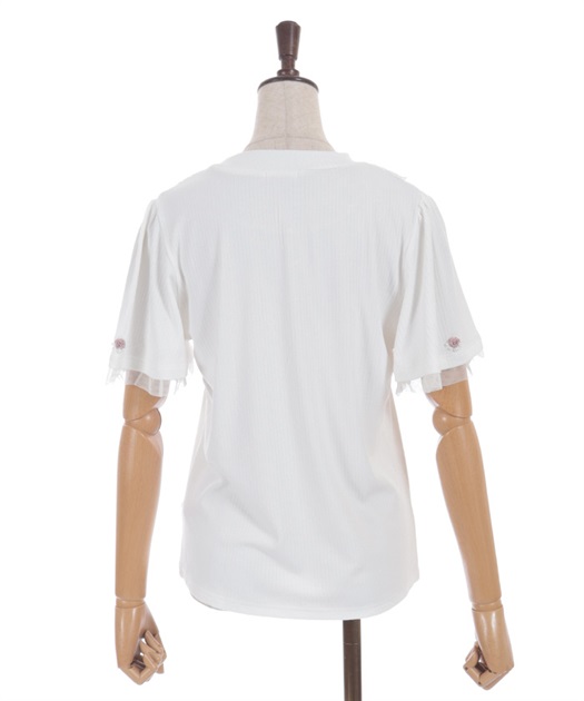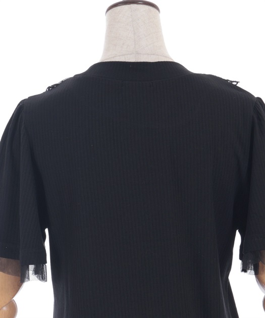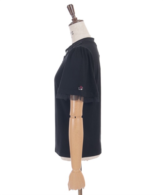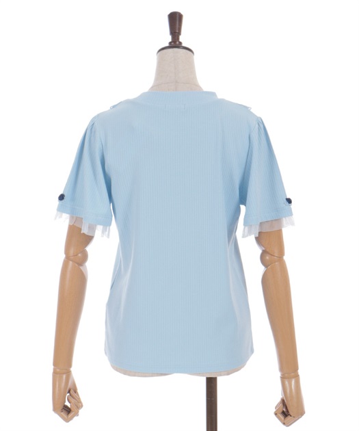袖口からはチュールフリルが覗くデザインで、フェミニンさをプラス。
