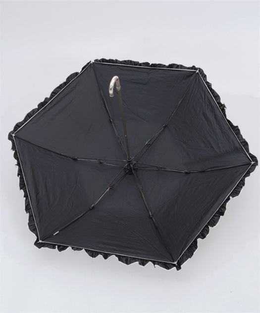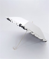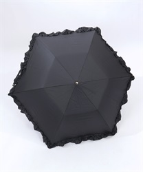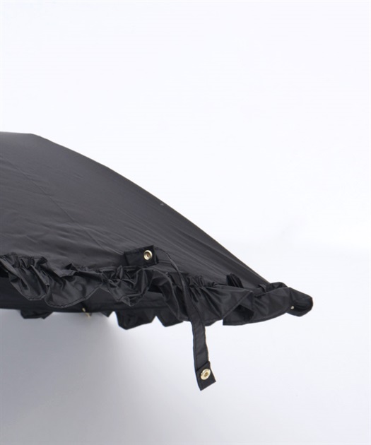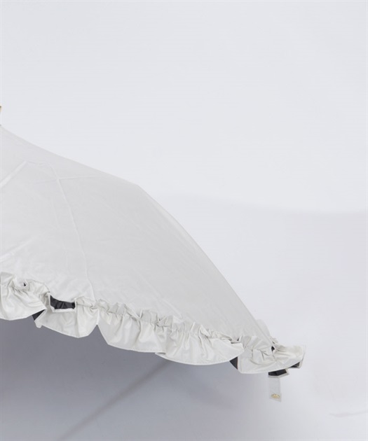 フェミニンなフリルデザインの晴雨兼用折り畳み傘です。