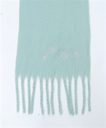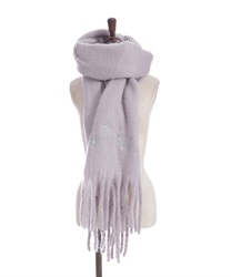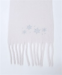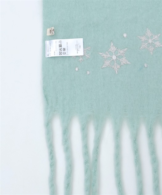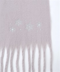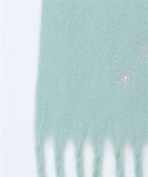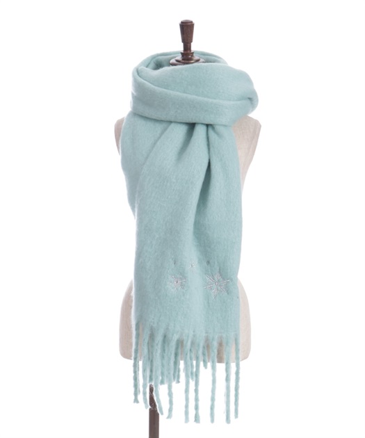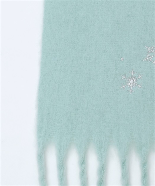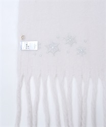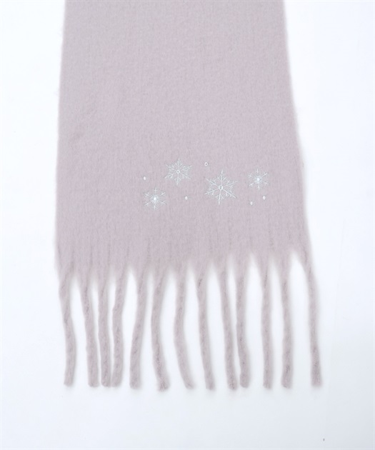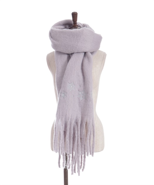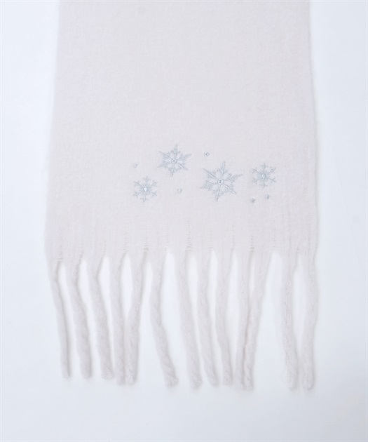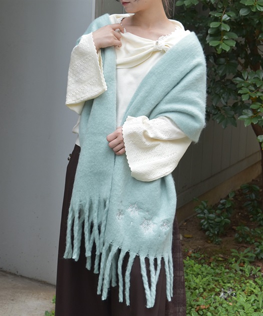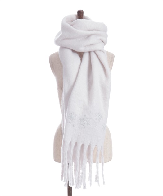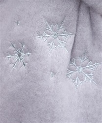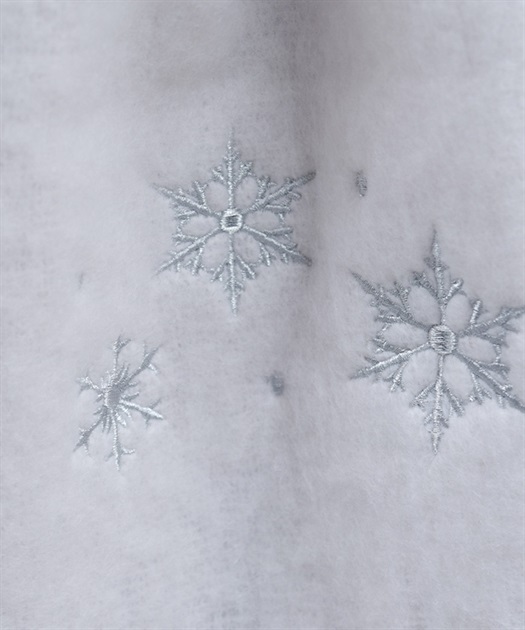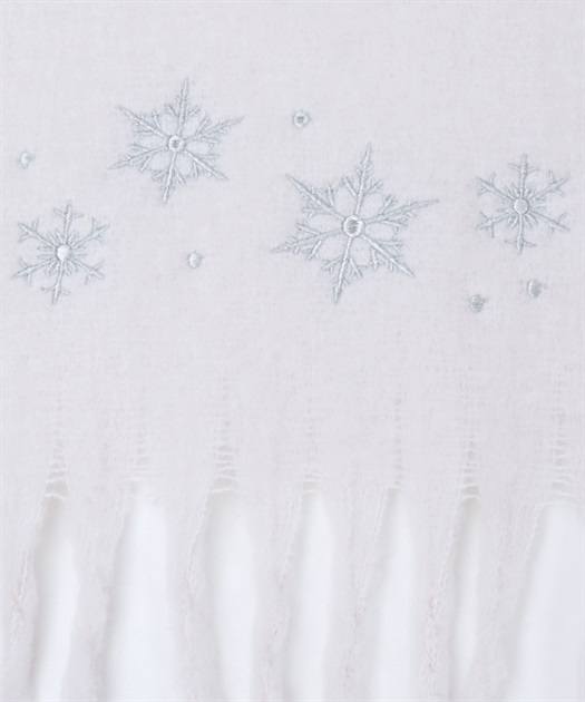 ふんわりやわらかな起毛生地に、雪の結晶モチーフの刺繍をほどこしたストールです。