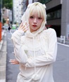 ひも先には小さなお花のようなぽんぽんモチーフをプラス。細部までこだわった可愛らしさが魅力です。ナチュラルな雰囲気の中にガーリーさを添えるアイテム。