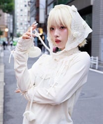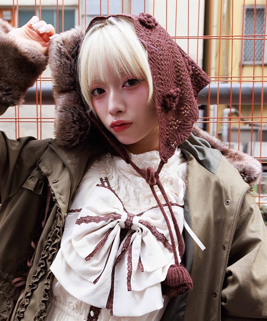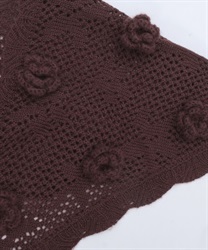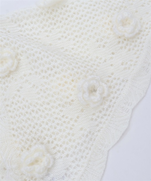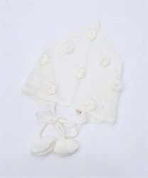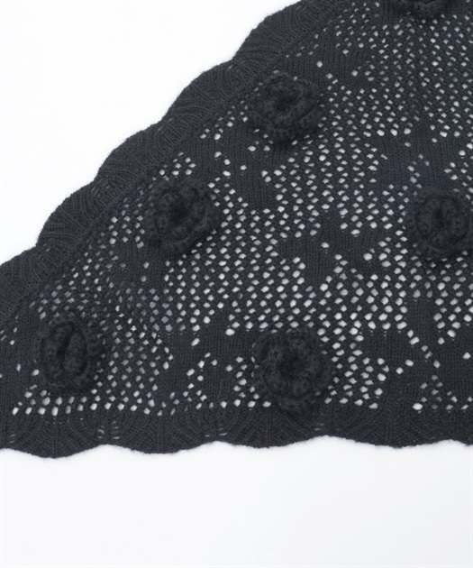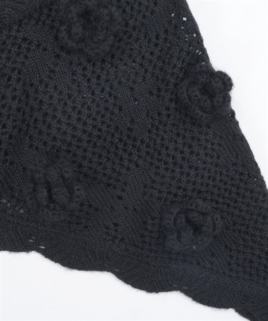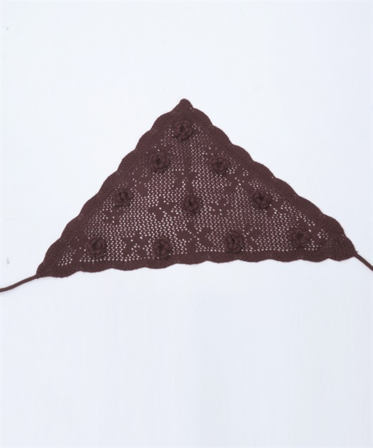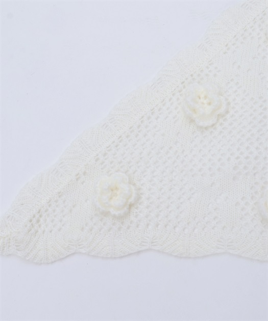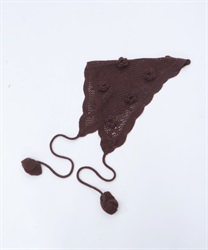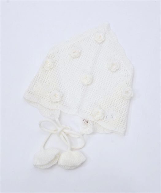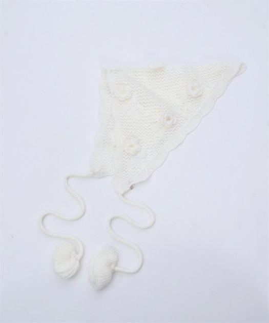 やわらかなニット素材で仕立てたバブーシュカ。優しい風合いとほっこりとしたデザインでコーディネートにポイントをプラスするアイテム。ニットのお花モチーフが全体にあしらわれ、温もりを感じさせる仕上がりに。
