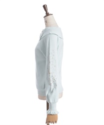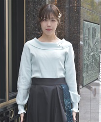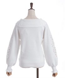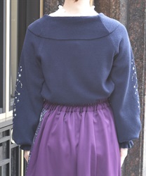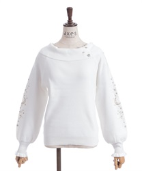 袖にキラキラのラメ糸で刺繍を施したニットトップスです。