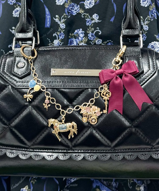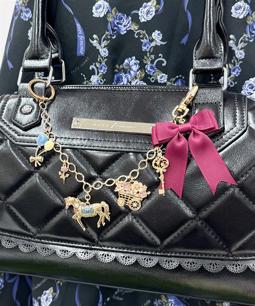 バッグのハンドル~ハンドルの間に渡すように付けるタイプで、モチーフが並んだ様子はまるでパレードを見ているよう♡