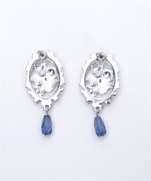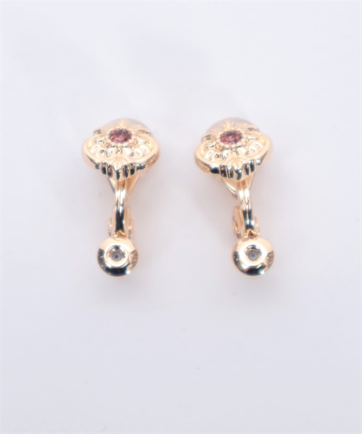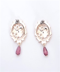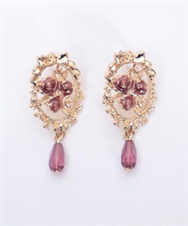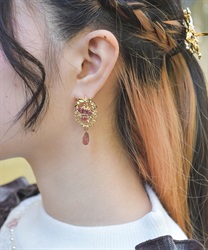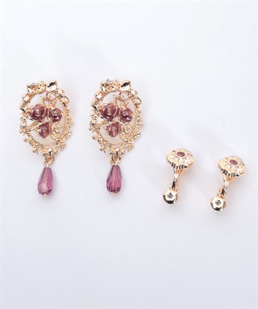 オーナメント風の装飾に鮮やかな薔薇が映えるイヤリング&ピアスです。