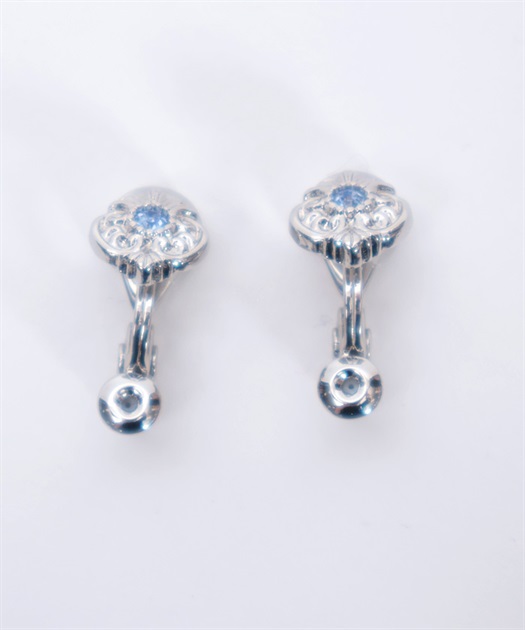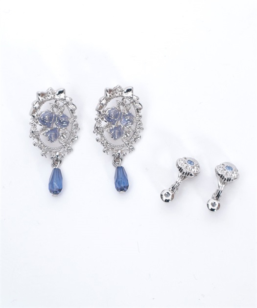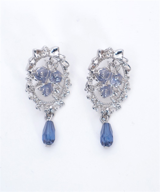 繊細な装飾にはさりげなくリボンがあしらわれ、華やかな薔薇モチーフ耳元を飾るデザイン。