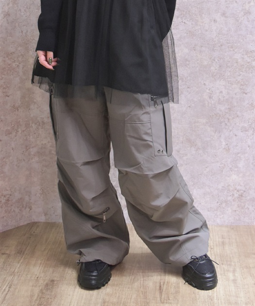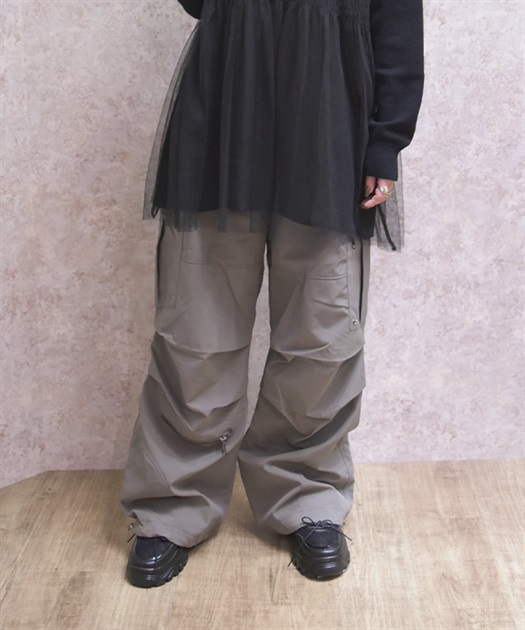 軽やかでシャカっとした質感が特徴のワイドパンツ。