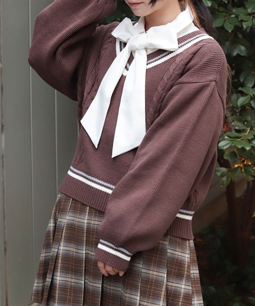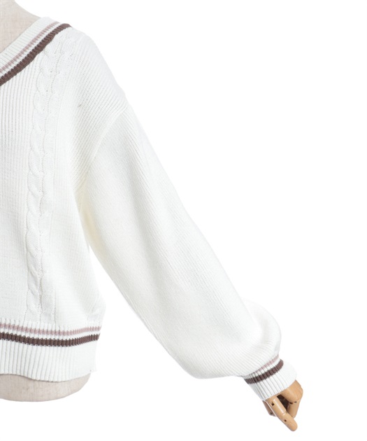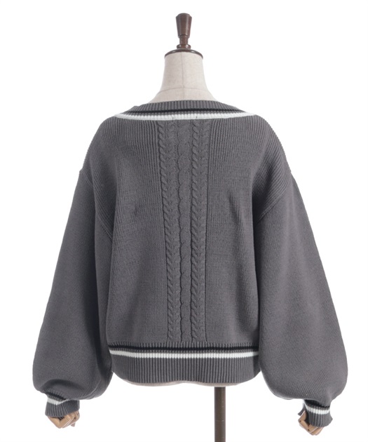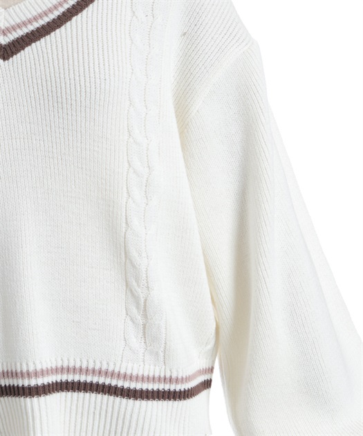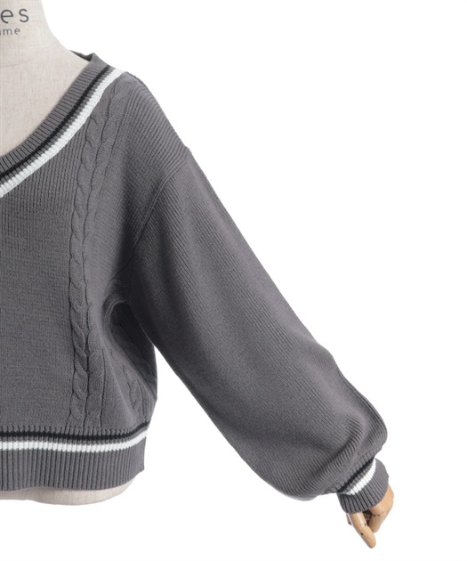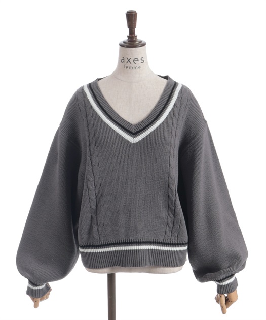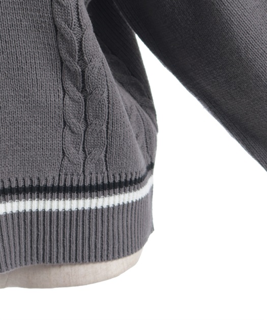 凹凸のない天竺編みに細めのケーブルをミックスし、スッキリ着られるアイテムです。