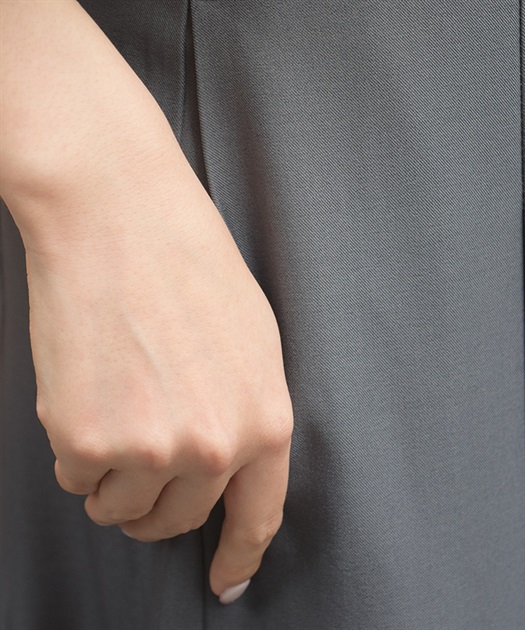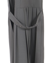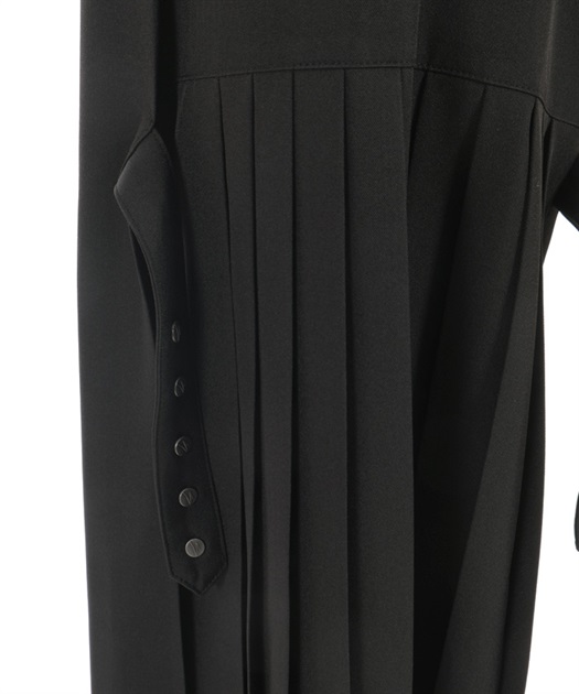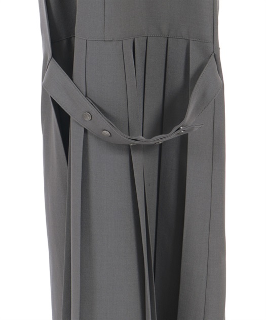 すっきりとしたシルエットに、サイドのベルト×プリーツディテールがアクセントを添える一着。裾に向かってやや広がるラインが動きのあるシルエットを生み、スタイルアップも叶えます。ウエスト部分のボタンデザインもさりげないポイントに。