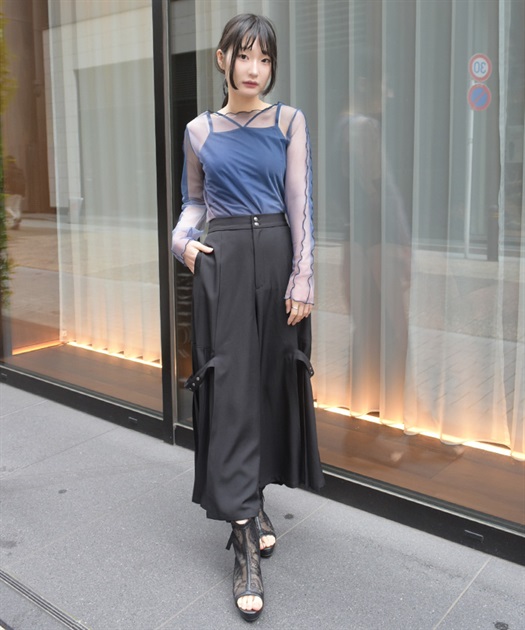 コンパクトなトップスを合わせてシャープにまとめたり、あえてゆるめのトップスで抜け感を出すのもおすすめ。足元で印象を変えながら、モードテイストをデイリーに楽しめるアイテムです。