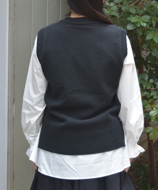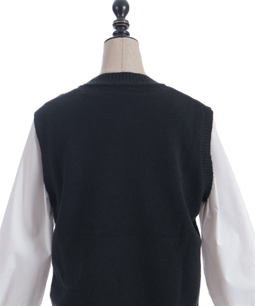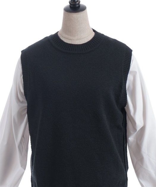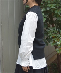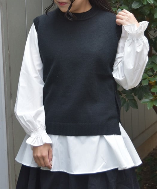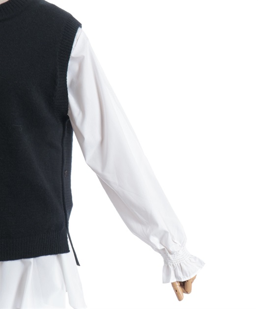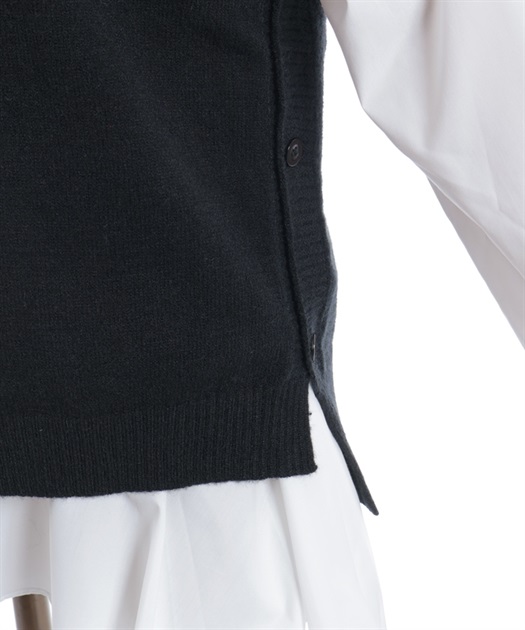 ベスト部分は柔らかなニット素材で、サイドボタンがさりげないアクセント。