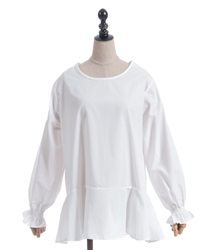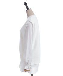 シャツ部分は軽やかな布帛素材を使用し、裾に向かってふんわりと広がるシルエットがフェミニンな印象を与えます。