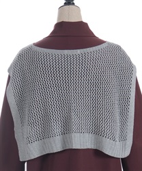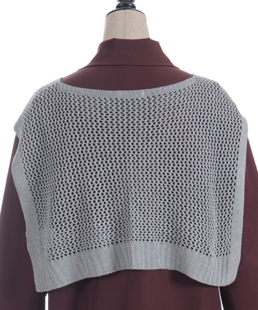 襟部分には繊細なレース編みのディテールがあしらわれ、やわらかで上品な印象を与えます。