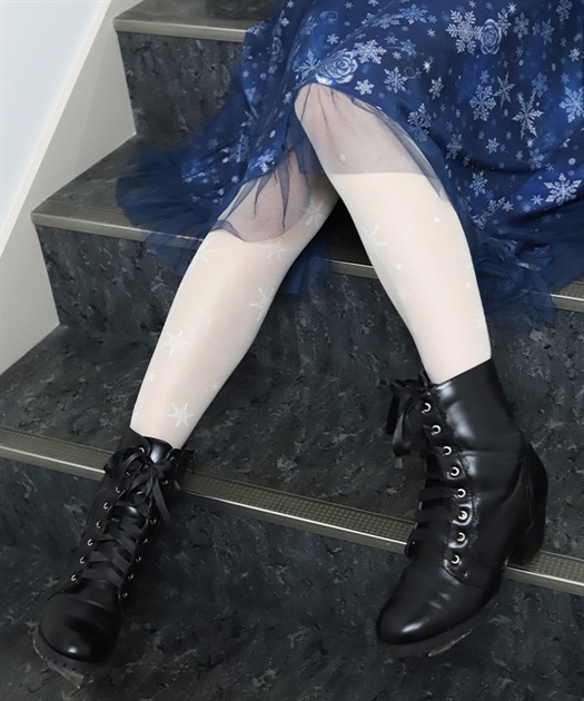 【アイテム説明】【商品紹介】華やかな雪の結晶柄のタイツです。【デザイン】様々な形の雪モチーフが足元を飾り、季節感を演出します。淡いカラーが優しげな印象。冬コーデのアクセントにぴったりなアイテムです。