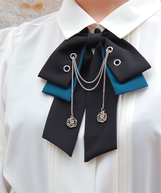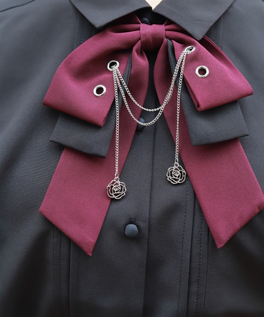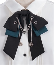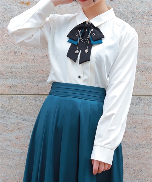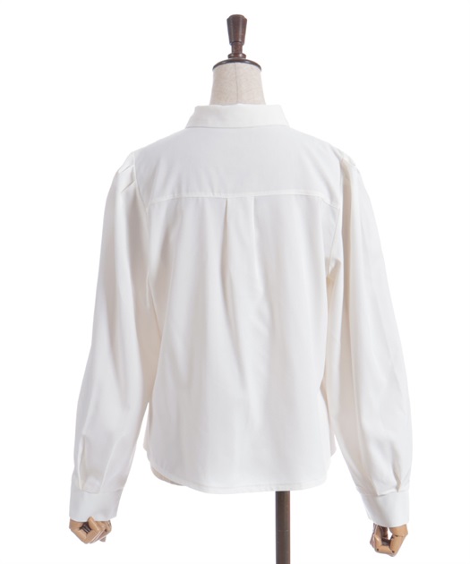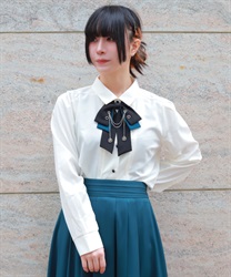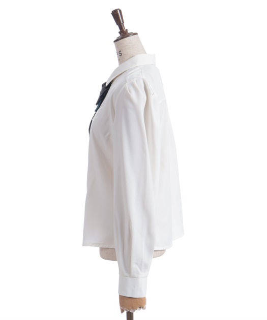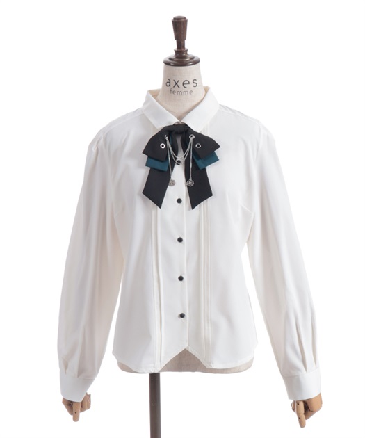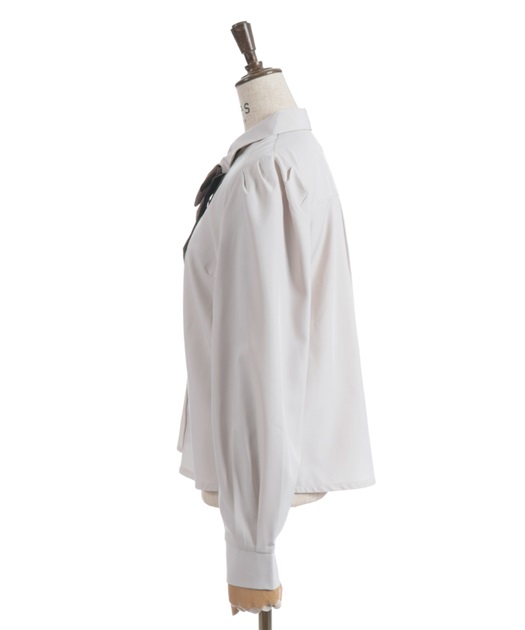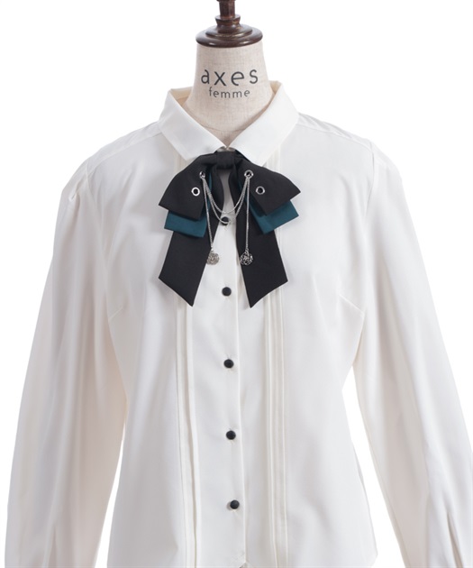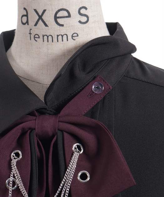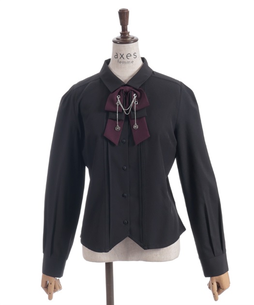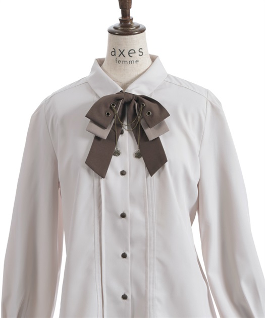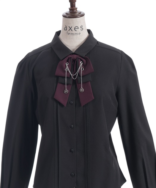 胸元のリボンタイがポイントで、存在感のあるブラウス。