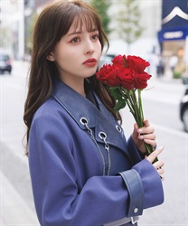 フロントに施された異素材の切替と、アクセントとなるチェーンがポイント。チェーンは取り外し可能で、気分やシーンに合わせて印象を変えられます。シルエットはすっきりとしたロングラインで、クールさとレディライクを両立。