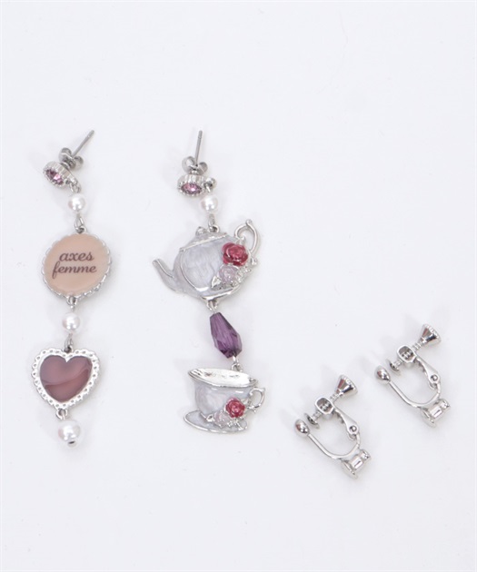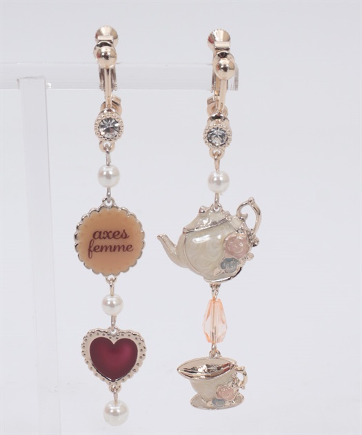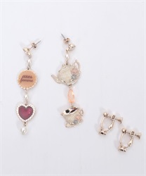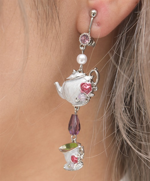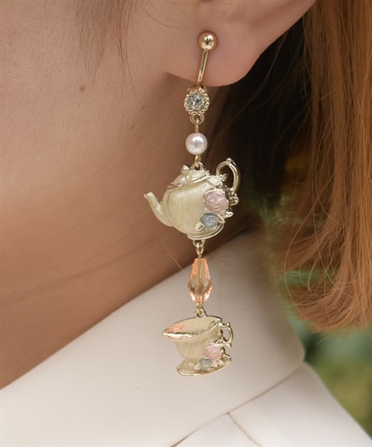 繊細なティータイムモチーフをぎゅっと詰め込んだ、クラシカルなイヤリング&ピアスです。