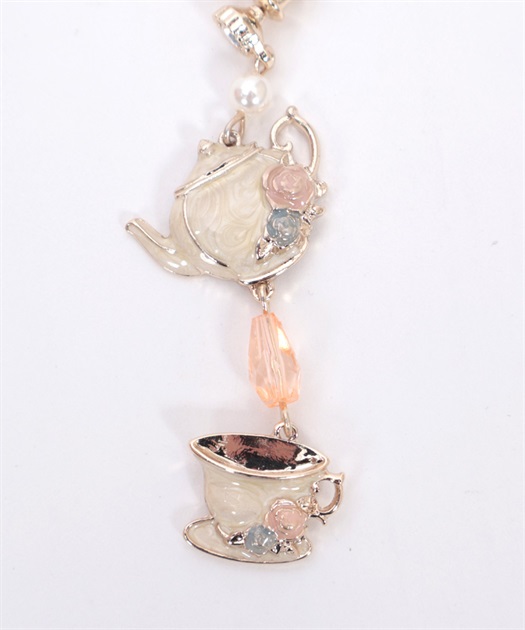 紅茶を注ぐ様子をイメージした、しずく型のビーズがポイントです。
