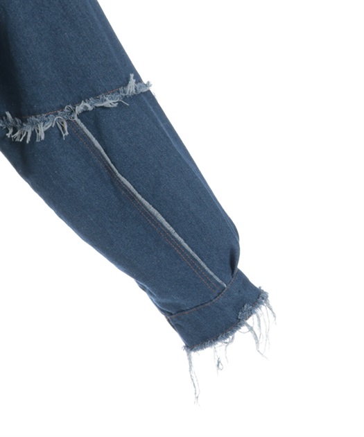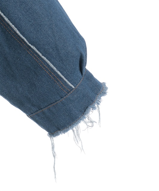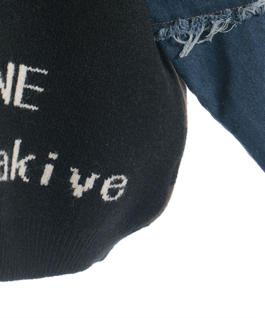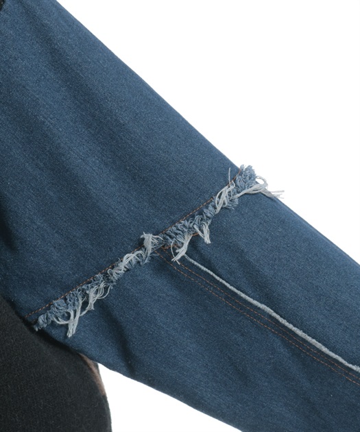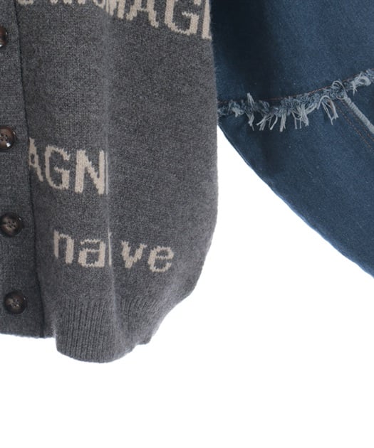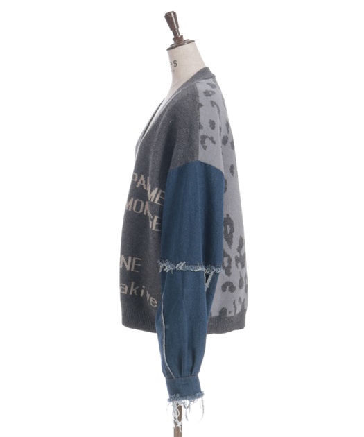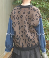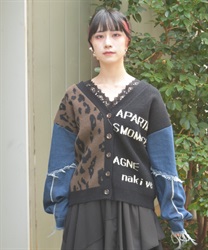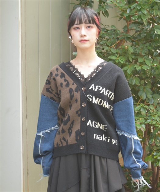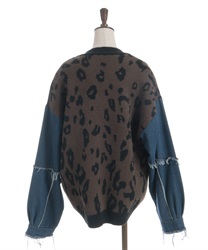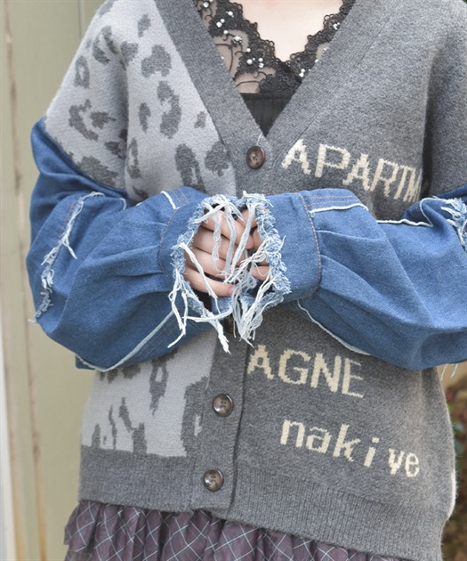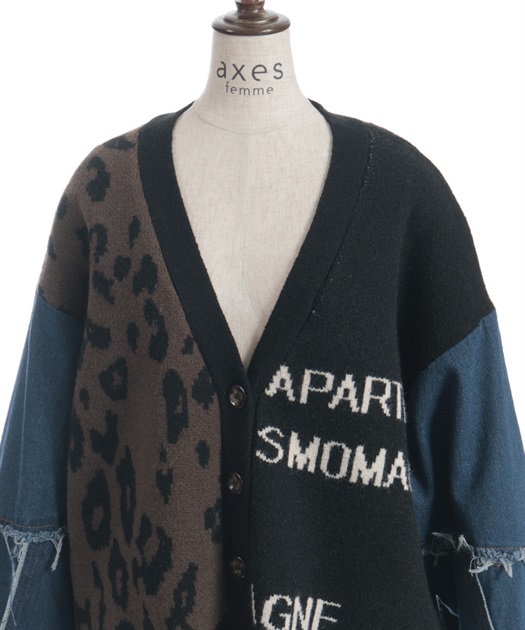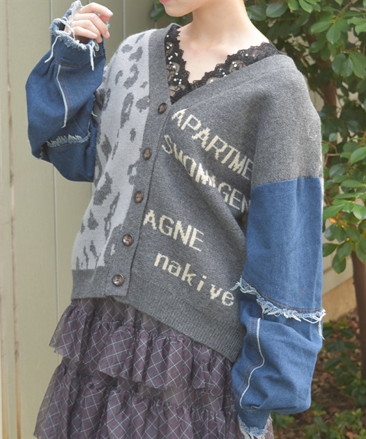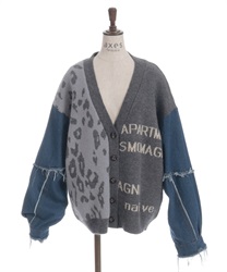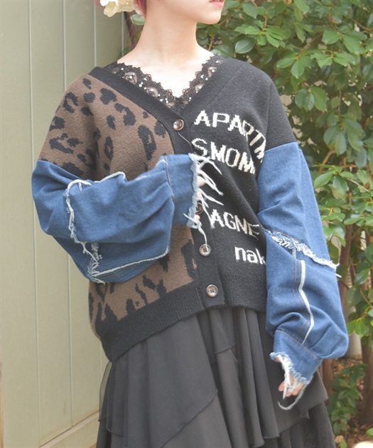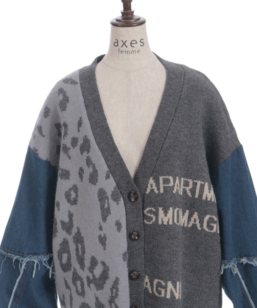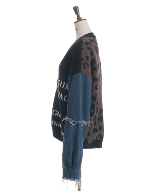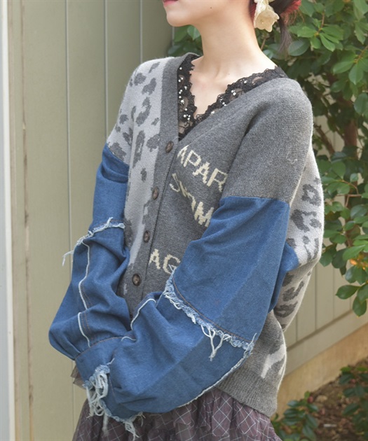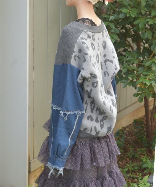 前身頃にはアニマル柄×ロゴ、袖には異素材デニムを使用。